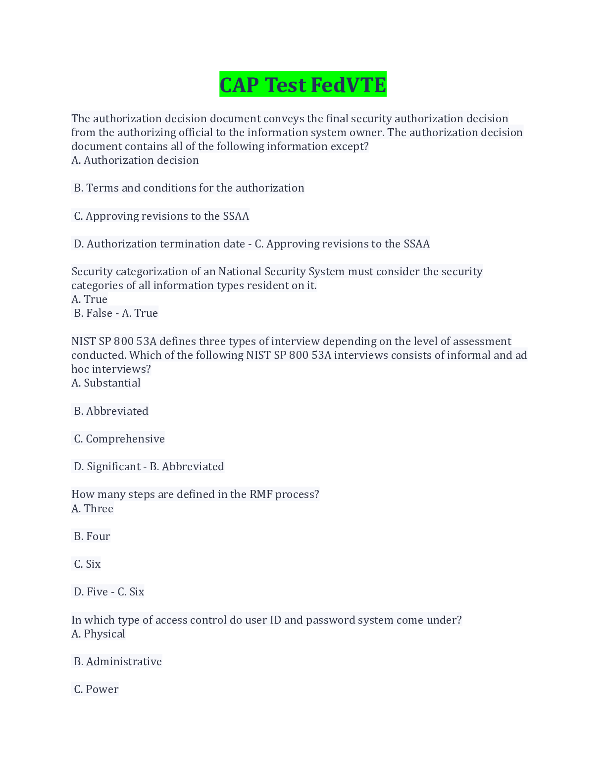 CAP Test FedVTE QUESTIONS AND ANSWERS WITH COMPLETE SOLUTION