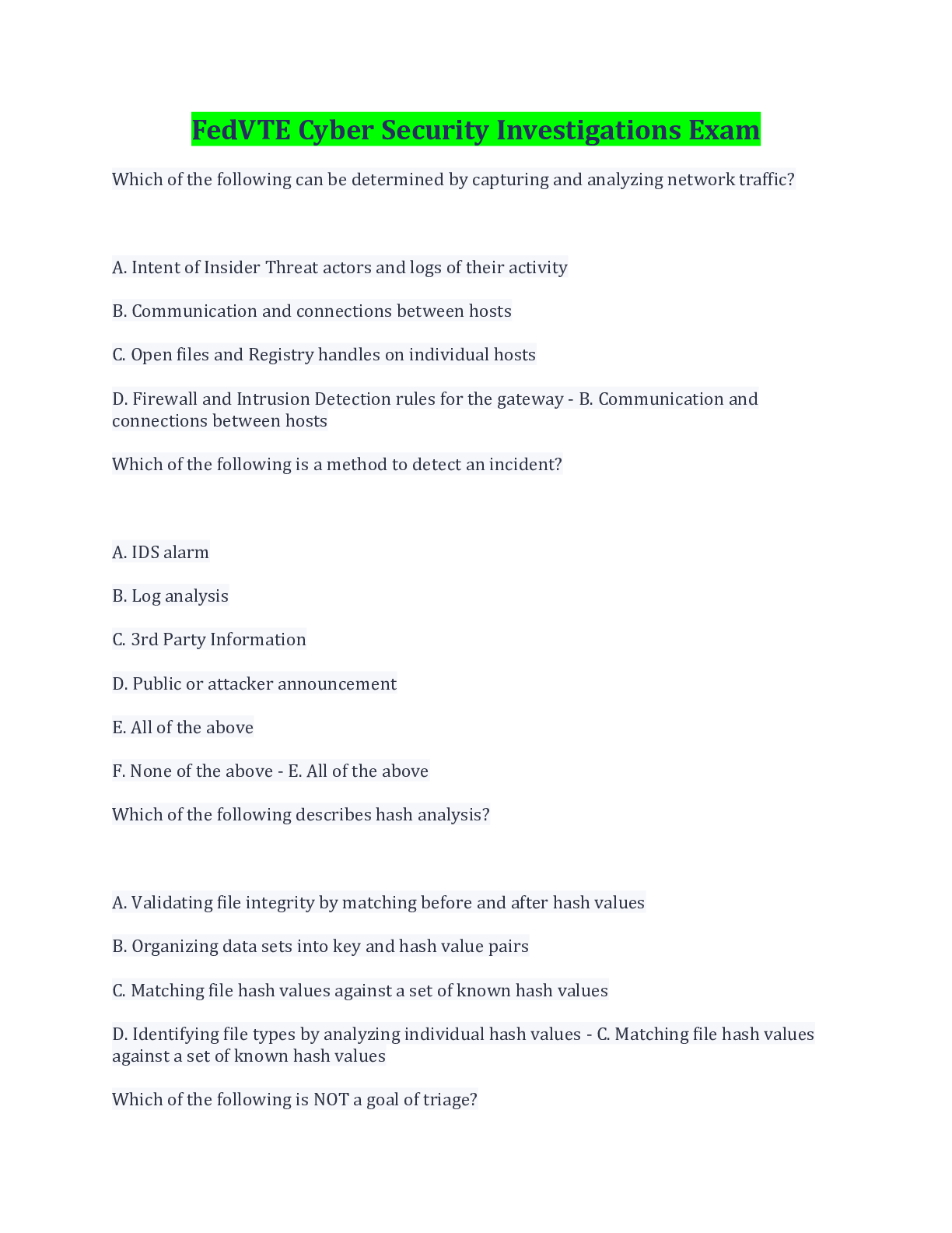 Computer Science> EXAM > FedVTE Cyber Security Investigations Exam Latest Update Questions And Answers (All)