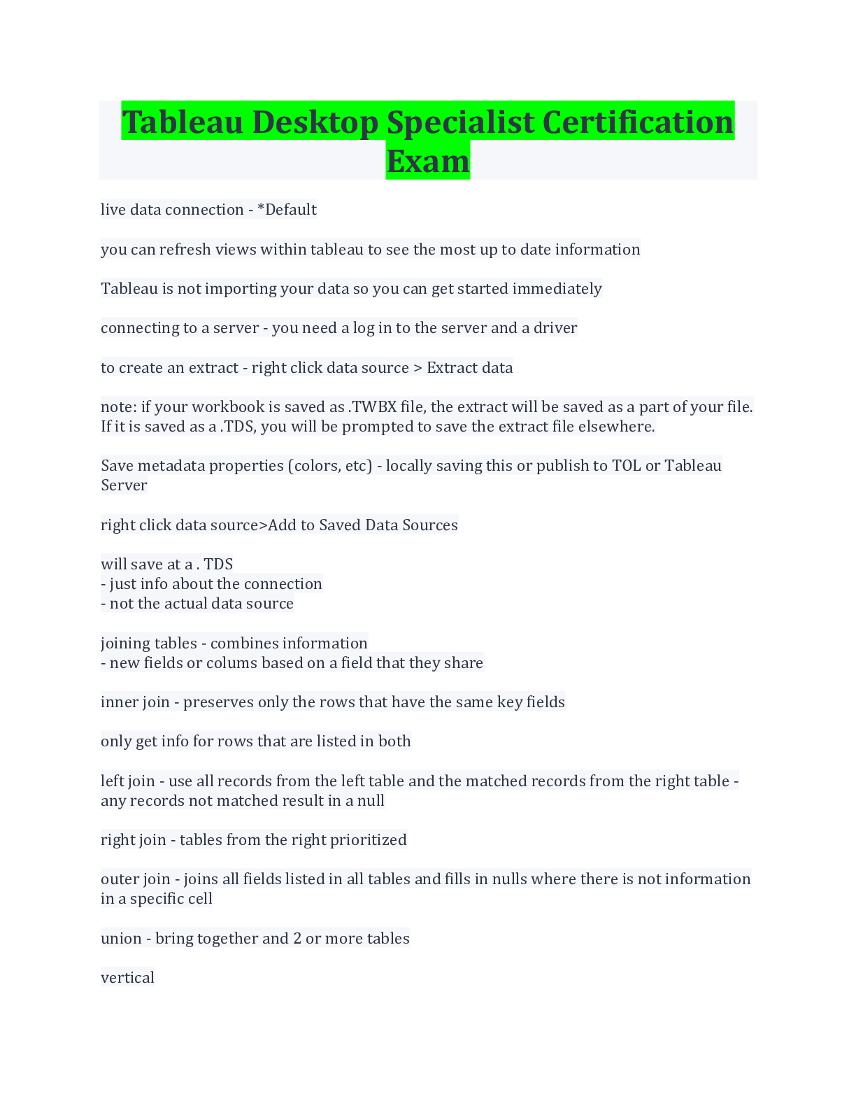 Computer Science> EXAM > Tableau Desktop Specialist Certification Exam Latest Update (All)