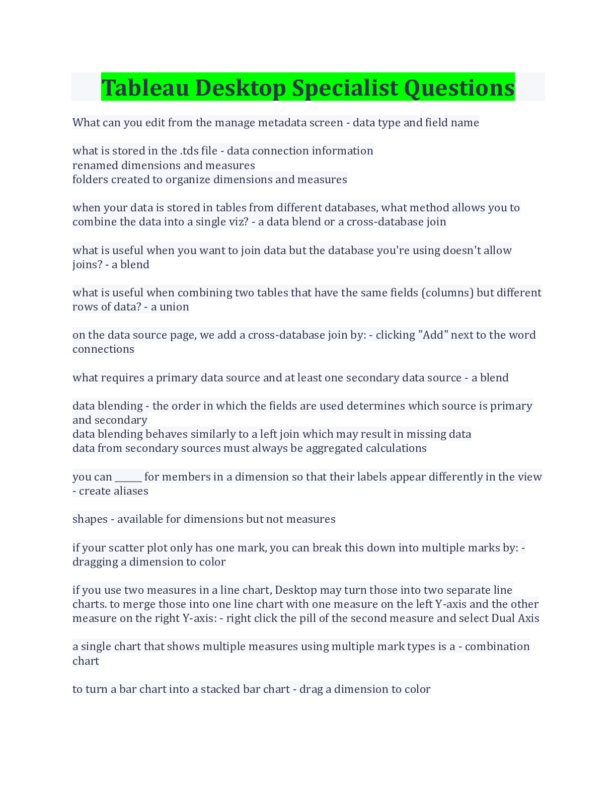 Tableau Desktop Specialist Questions And Answers With Complete Solution