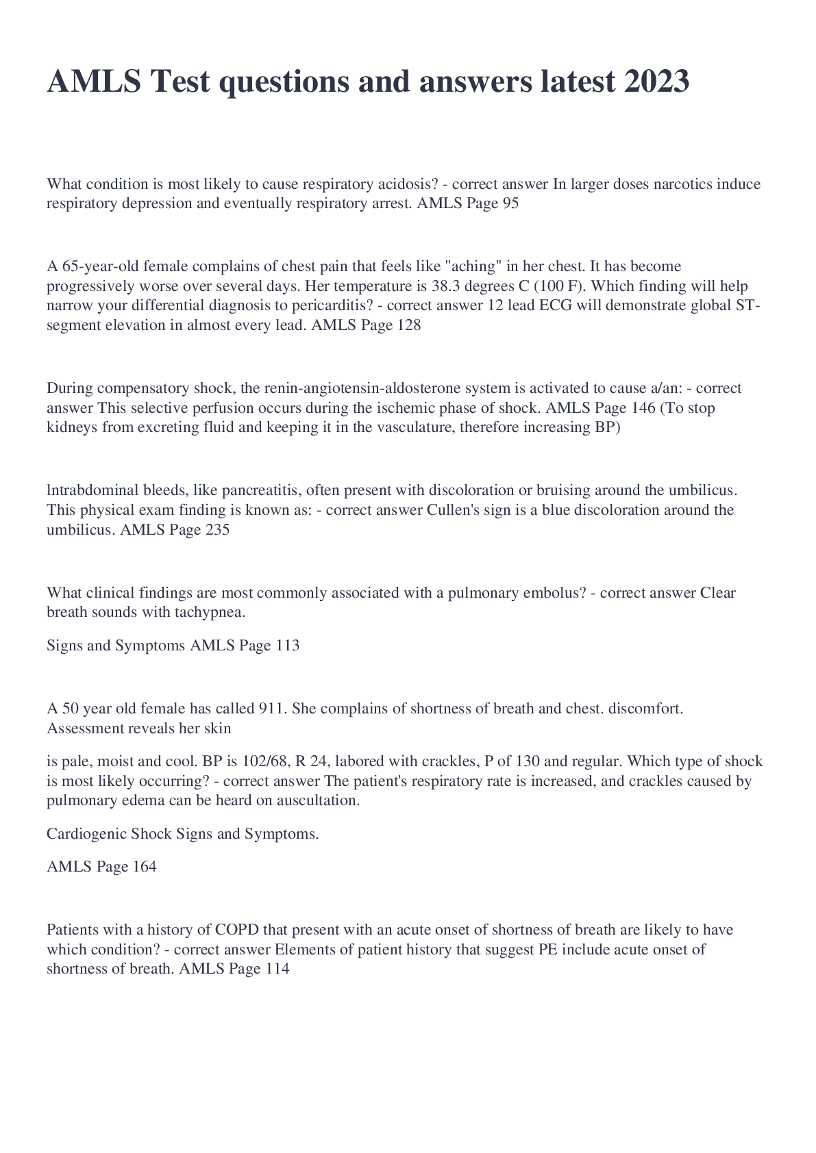 Education> EXAM > Advanced Medical Life Support AMLS Review(updated)latest 2023 graded A+ (All)