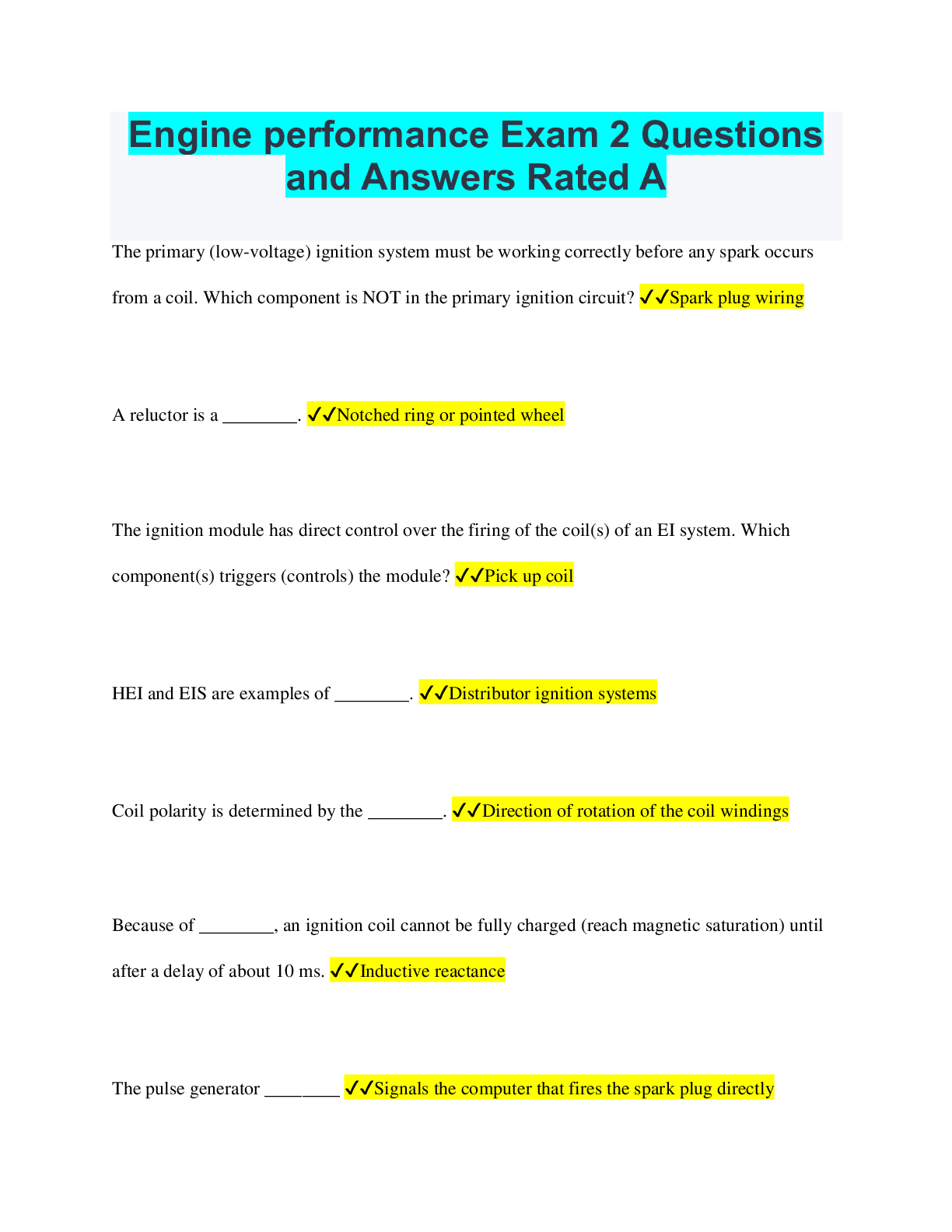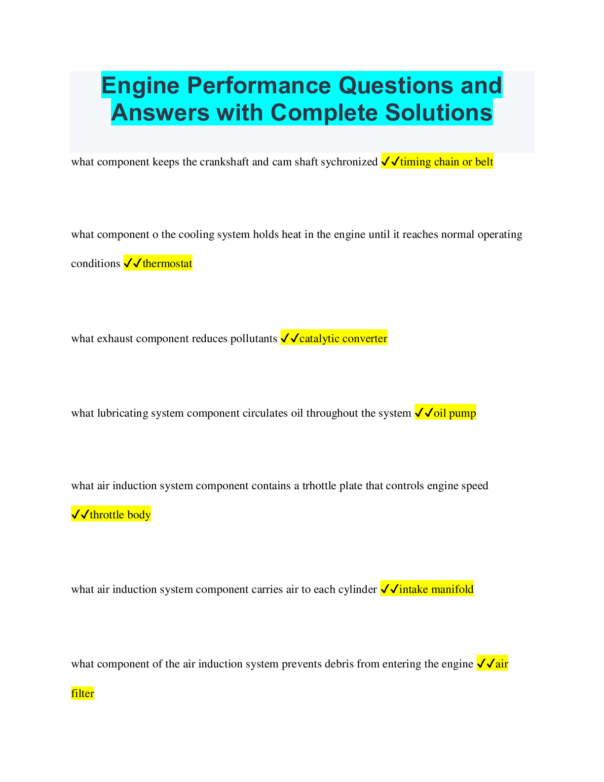 Bundle > Engine Performance Bundled Exams Questions and Answers with Complete Solutions