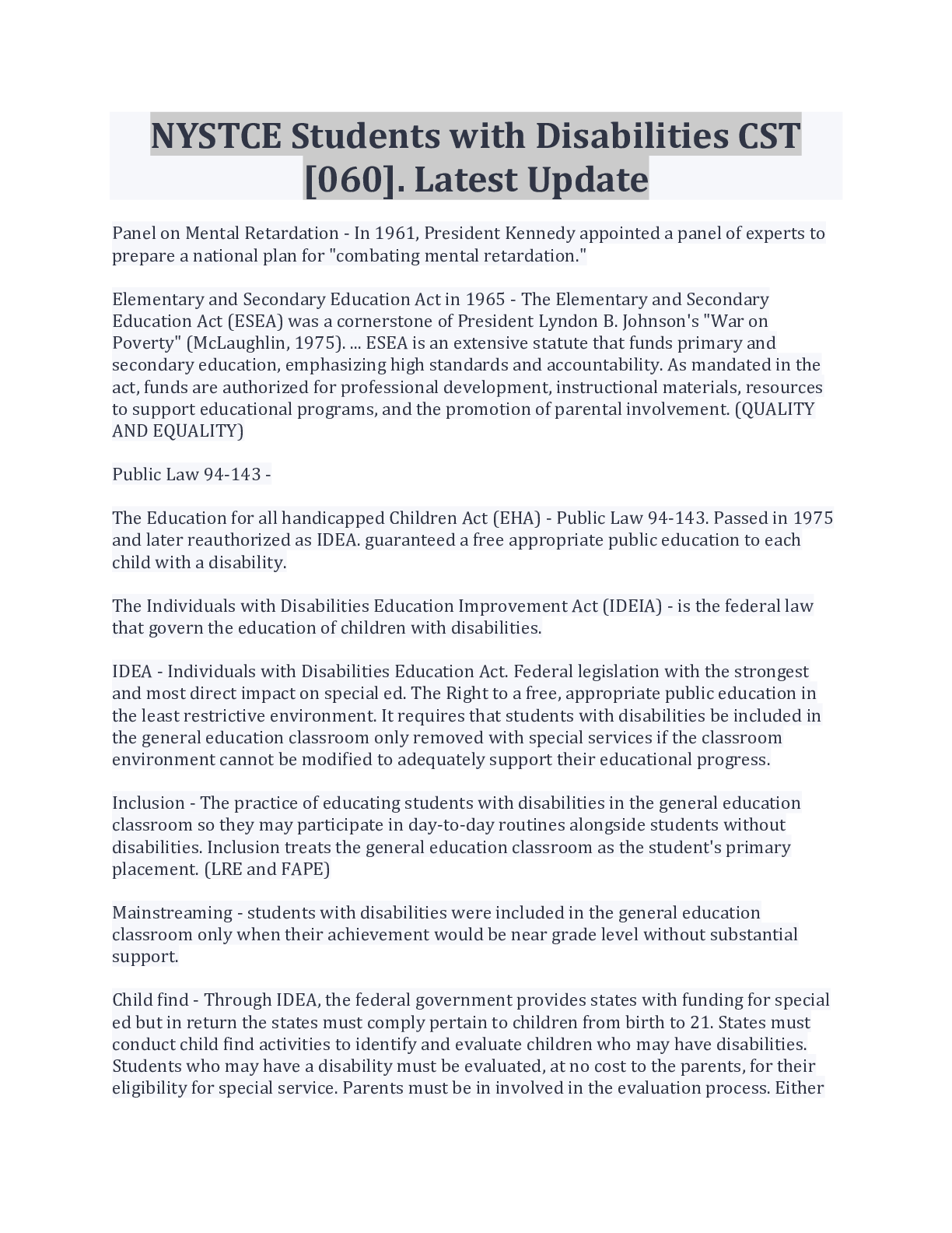 NYSTCE Students with Disabilities CST [060]. Latest Update