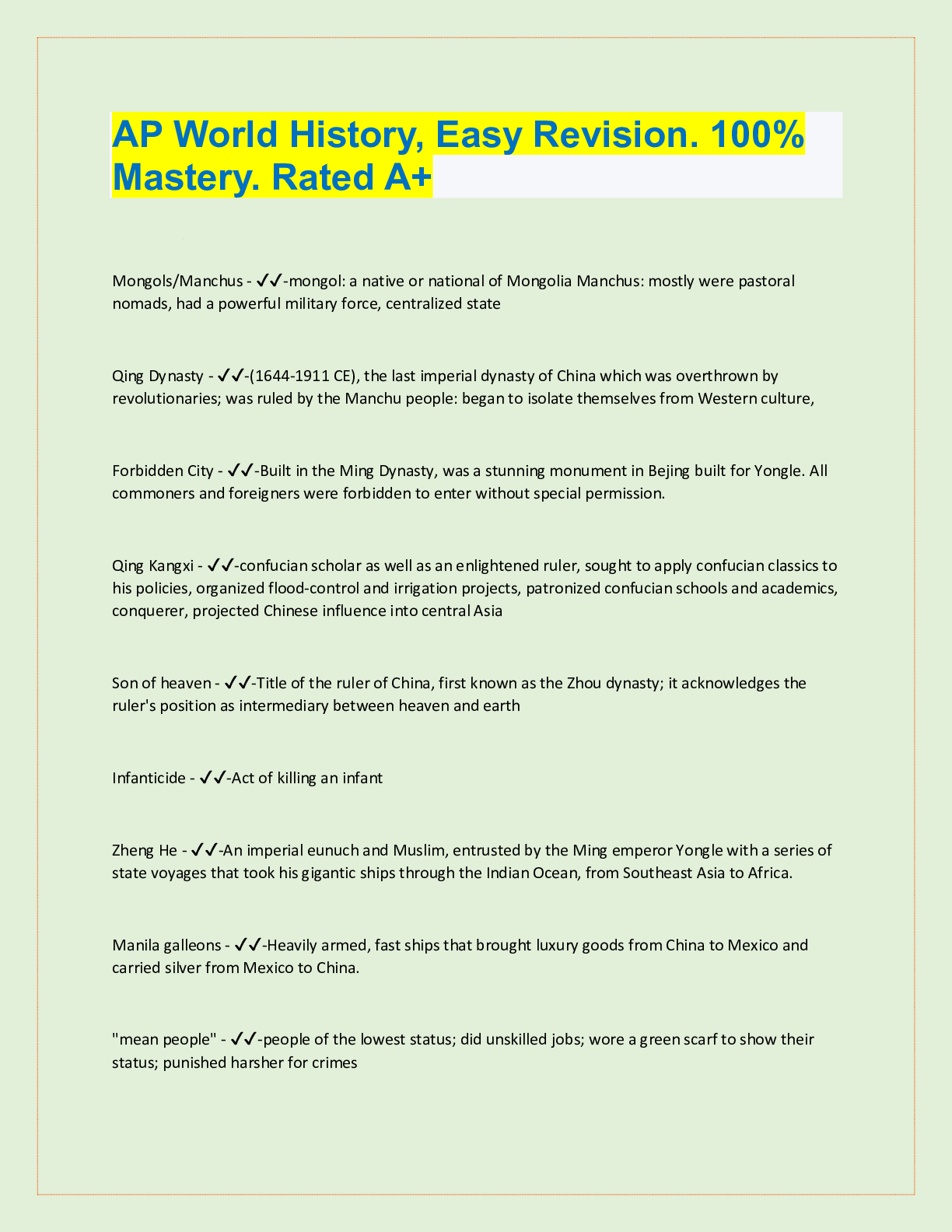 History> QUESTIONS & ANSWERS > AP World History, Easy Revision. 100% Mastery. Rated A+ (All)