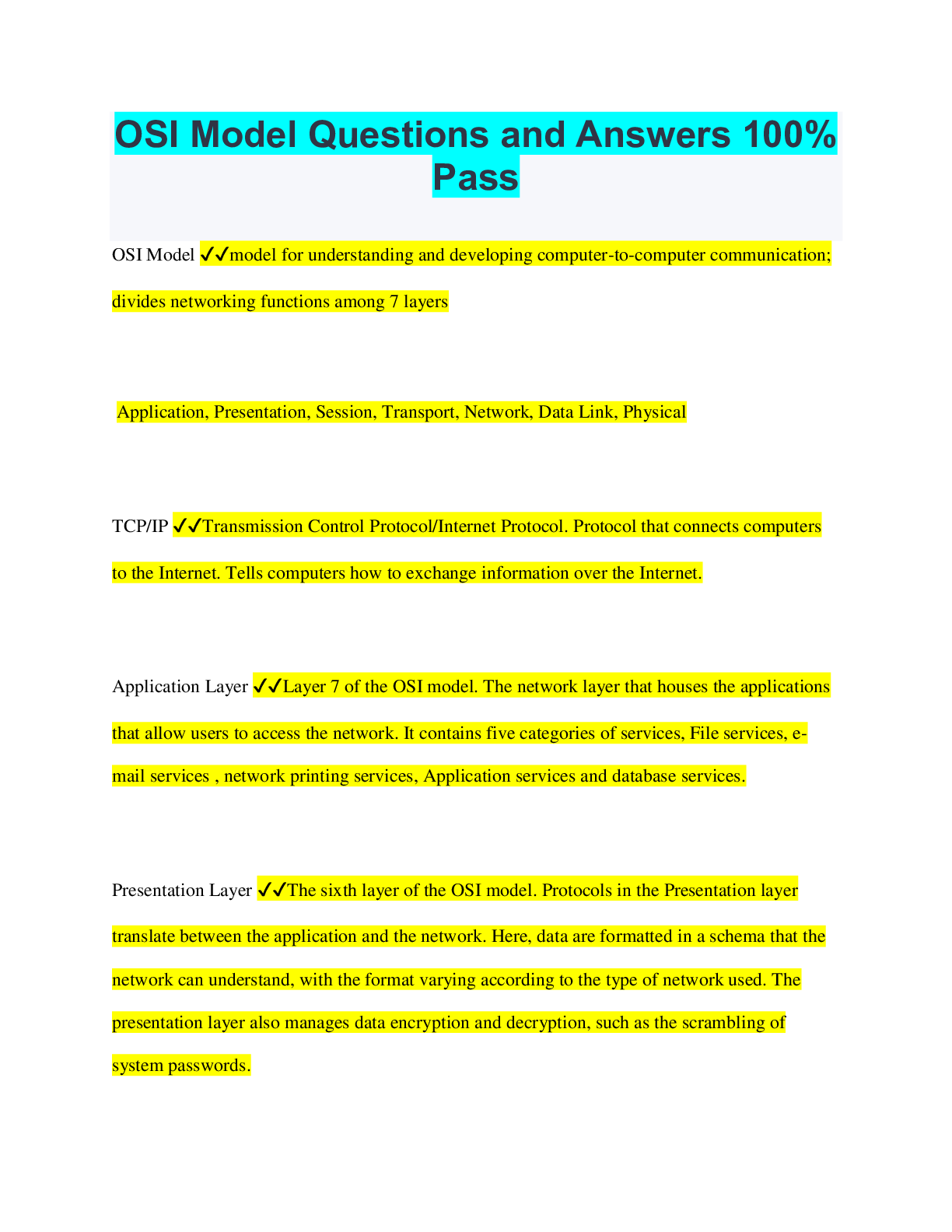 Computer Science> QUESTIONS & ANSWERS > The OSI Model (2022/2023) Already Passed (All)