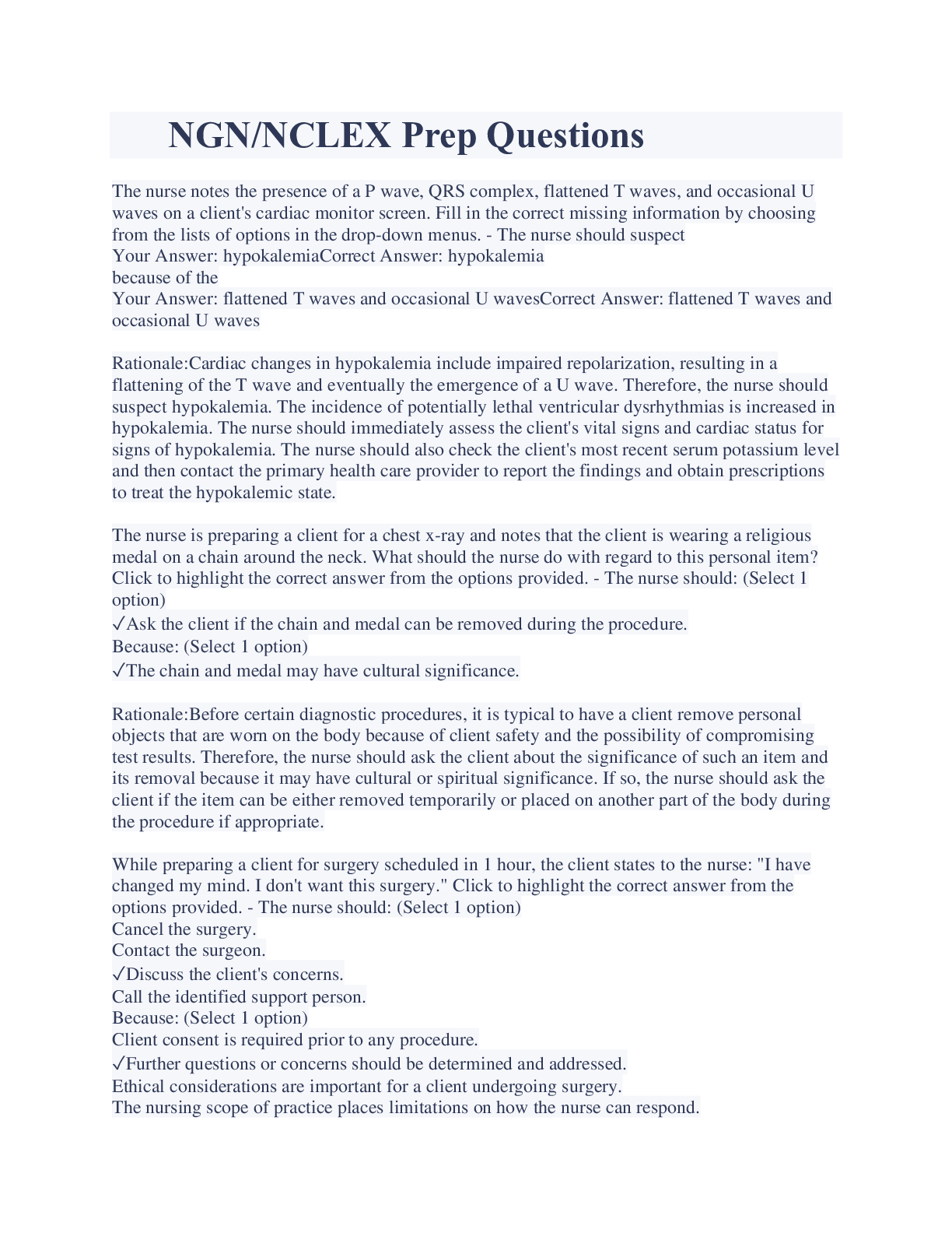 Health Care> EXAM > NGN/NCLEX Prep Questions And Answers Latest Updates (All)