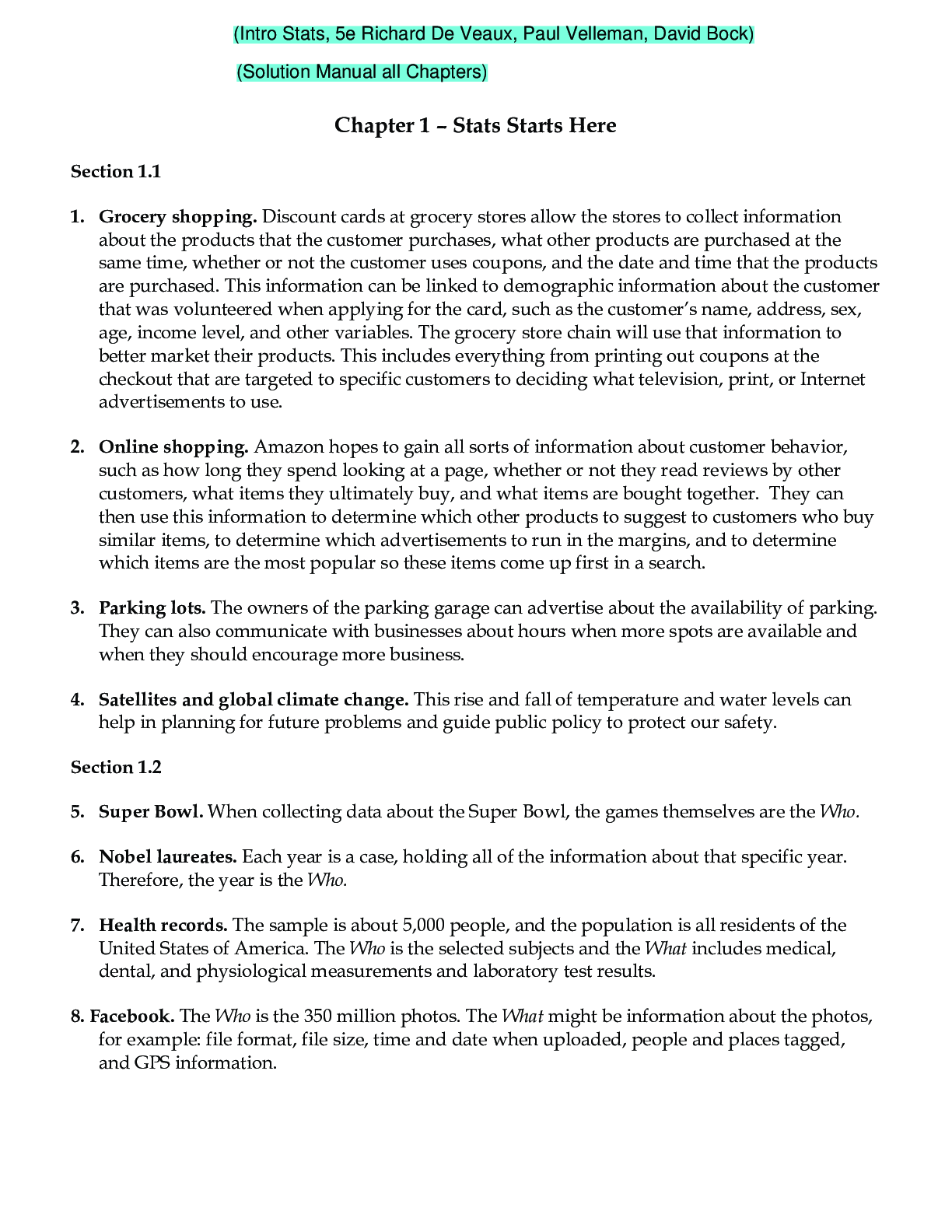 Bundle > Intro Stats, 5e Richard De Veaux, Paul Velleman, David Bock (Solution Manual with Test Bank)