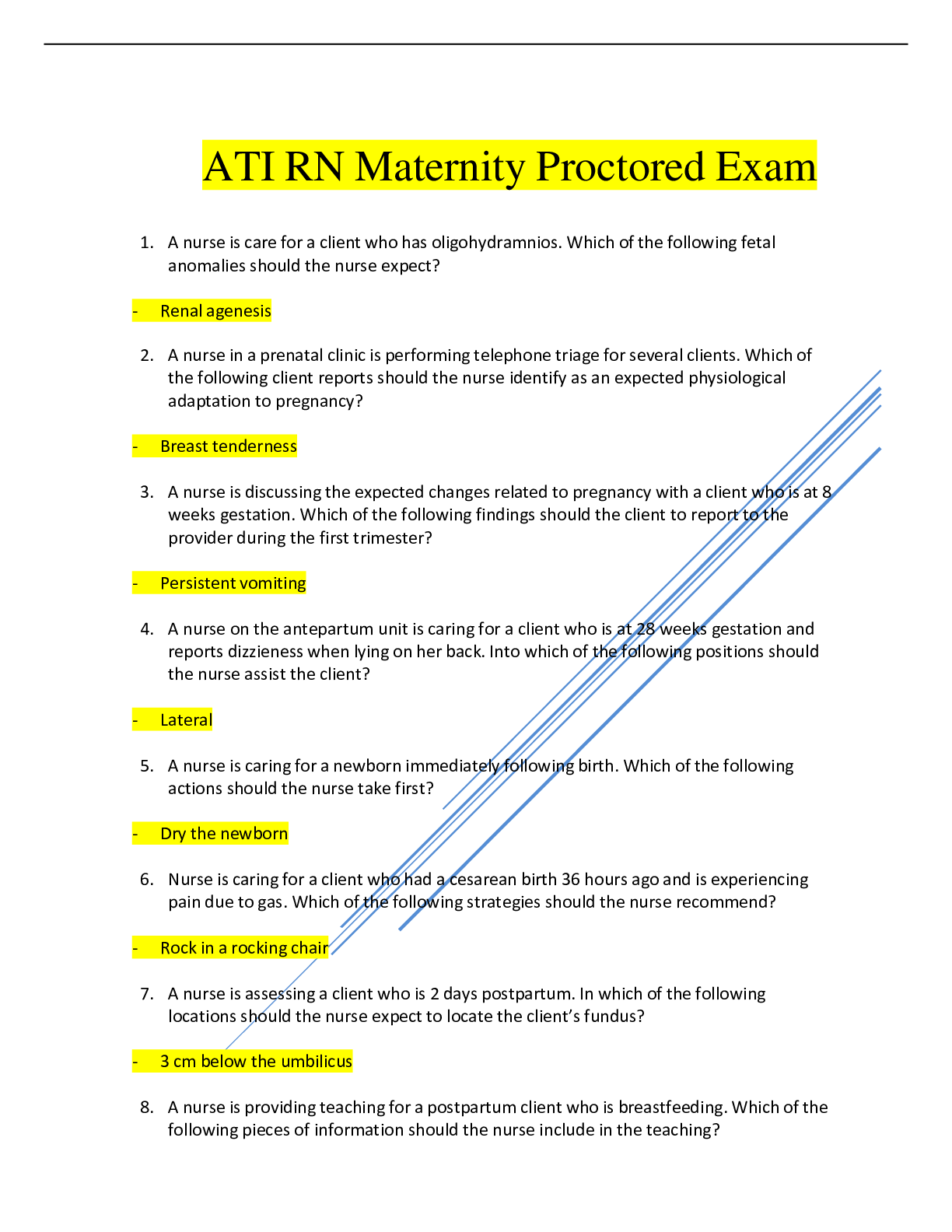 *NURSING> EXAM > ATI RN Maternity Proctored Exam 2022 (All)