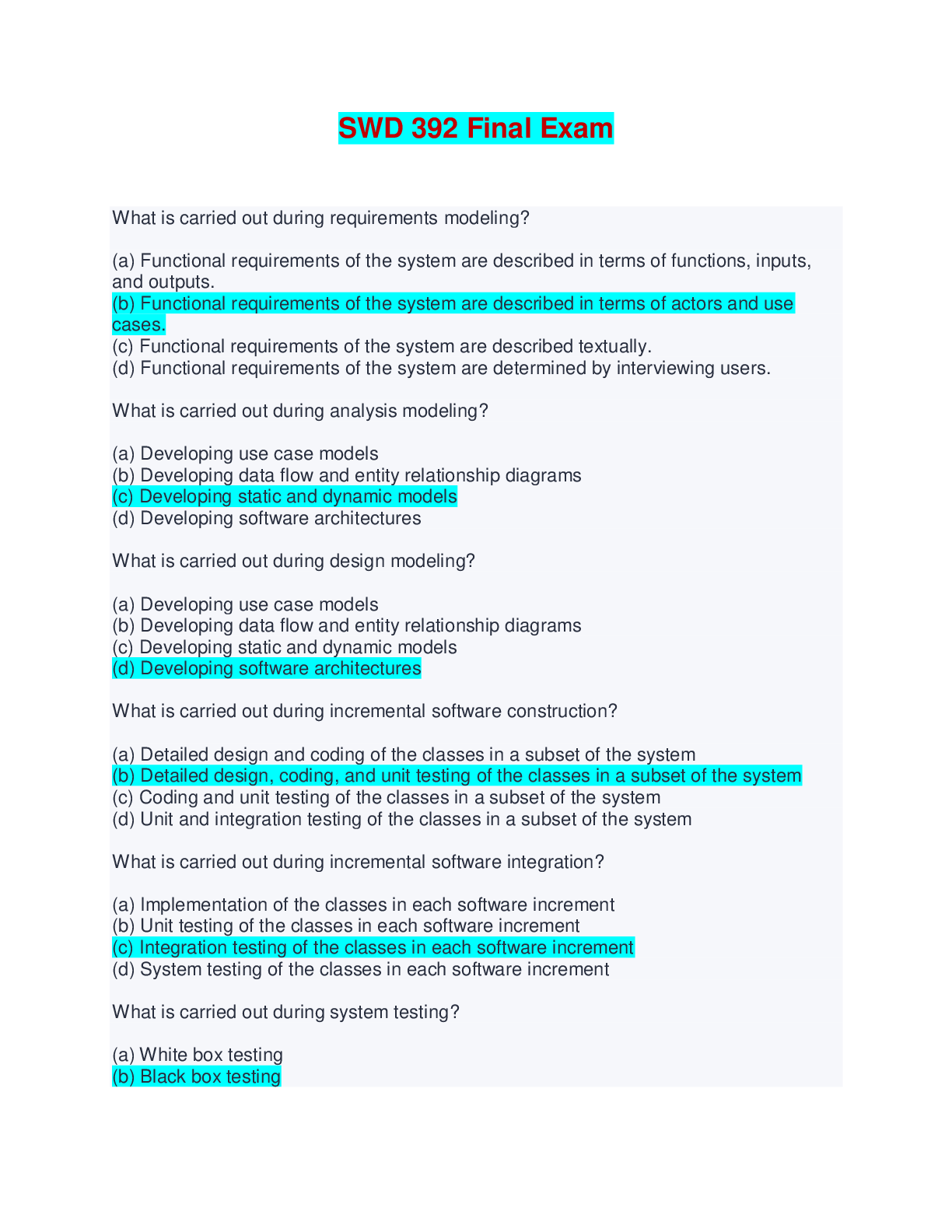 Software Engineering > EXAM > SWD 392 Final Exam | Questions with 100% Correct Answers (All)