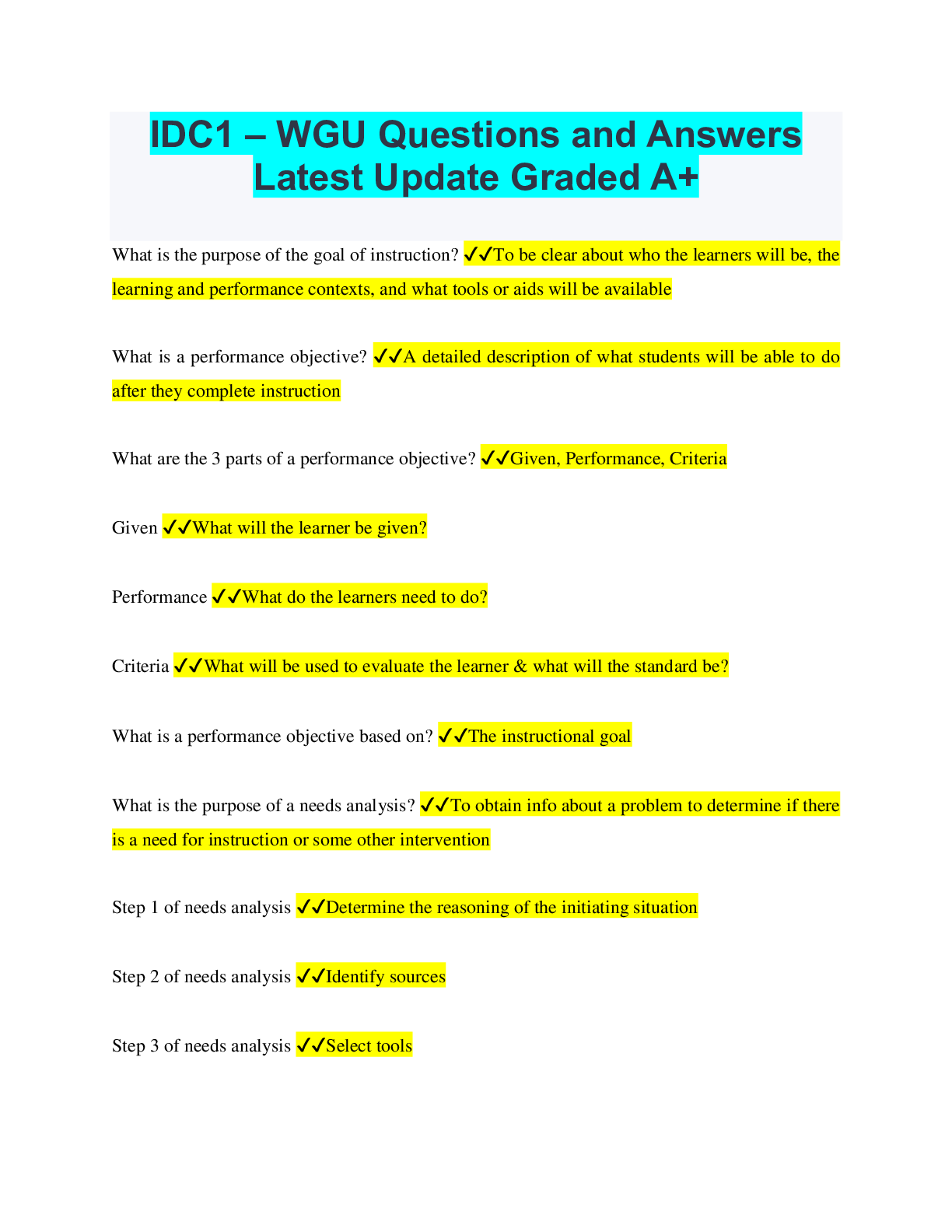 English 106 > QUESTIONS & ANSWERS > IDC1 – WGU Questions and Answers Latest Update Graded A+ (All)