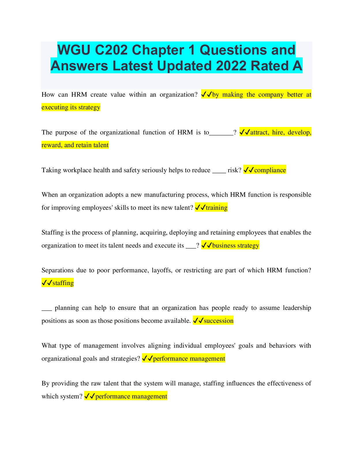 Human Resource Management > QUESTIONS & ANSWERS > WGU C202 Chapter 1 Questions and Answers Latest Updated 2022 Rated A (All)