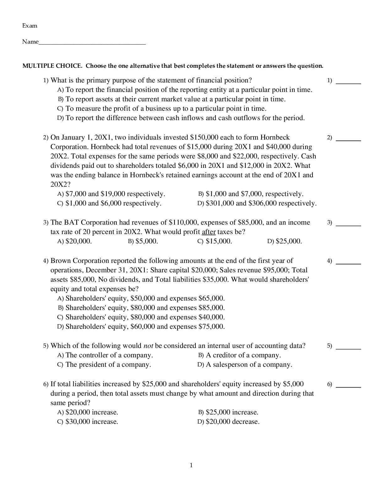 Financial Accounting > QUESTIONS & ANSWERS > Role of Accounting and Recording Accounting Information | Download for quality grades | Correct answers are indicated | (All)