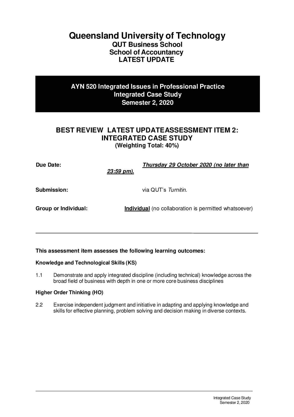 Financial Accounting > ANSWERS AND COMMENTARIES > BEST REVIEW LATEST UPDATEASSESSMENT ITEM 2: INTEGRATED CASE STUDY (All)