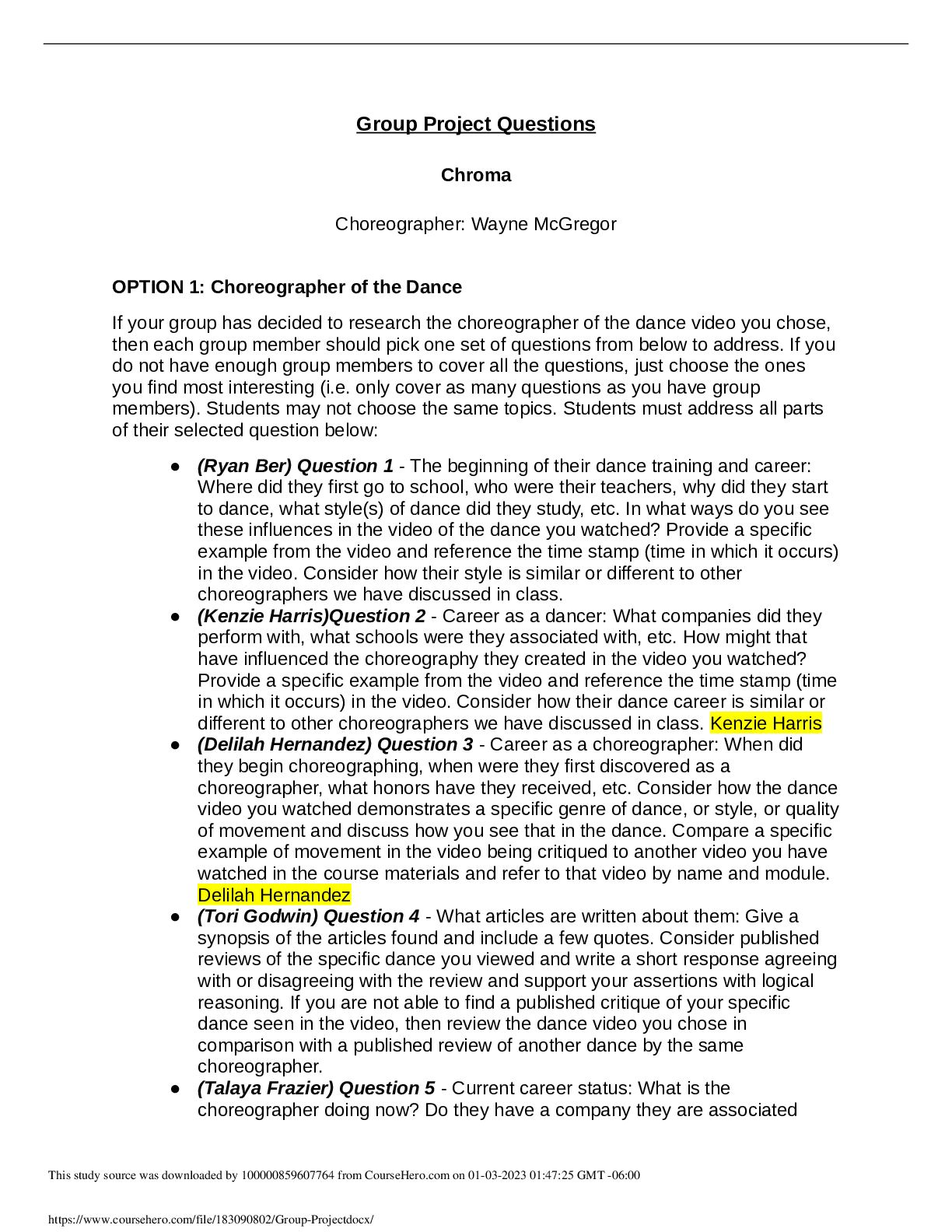 Dance 100 > CASE STUDY > Research Project > Group Project.. Group Project Questions Chroma Choreographer: Wayne McGregor (All)