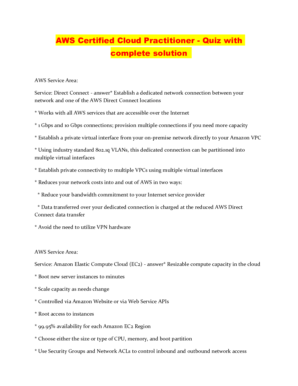 Architecture > QUESTIONS & ANSWERS > AWS Certified Cloud Practitioner - Quiz with complete solution (All)