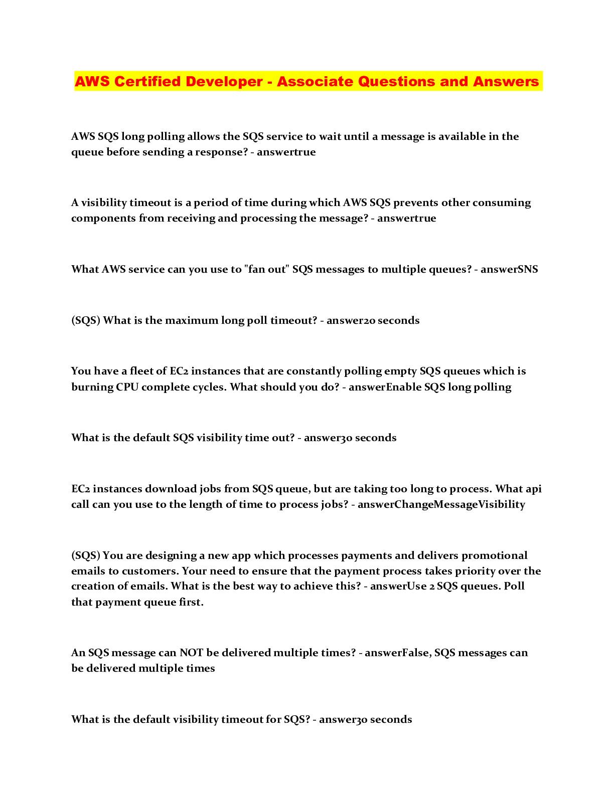 Architecture > QUESTIONS & ANSWERS > AWS Certified Developer - Associate Questions and Answers (All)