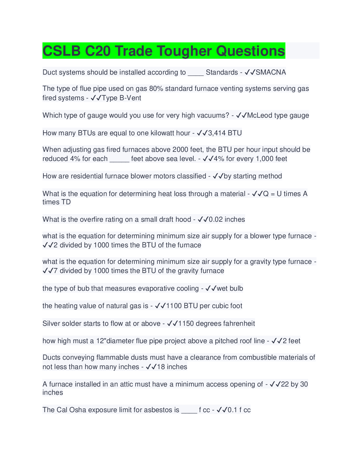 Physics > EXAMs > CSLB C20 Trade Tougher Questions | 100% Correct Answers (All)