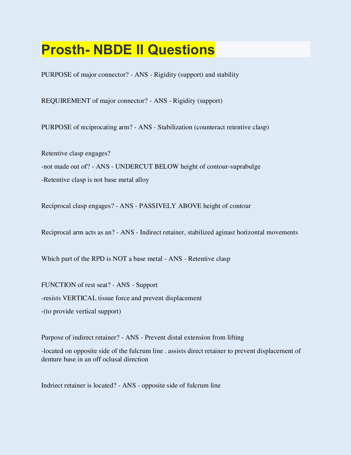 Physics > EXAMs > Prosth- NBDE II Questions | 480 Questions with 100% Correct Answers | Updated & Verified | 47 Pages (All)