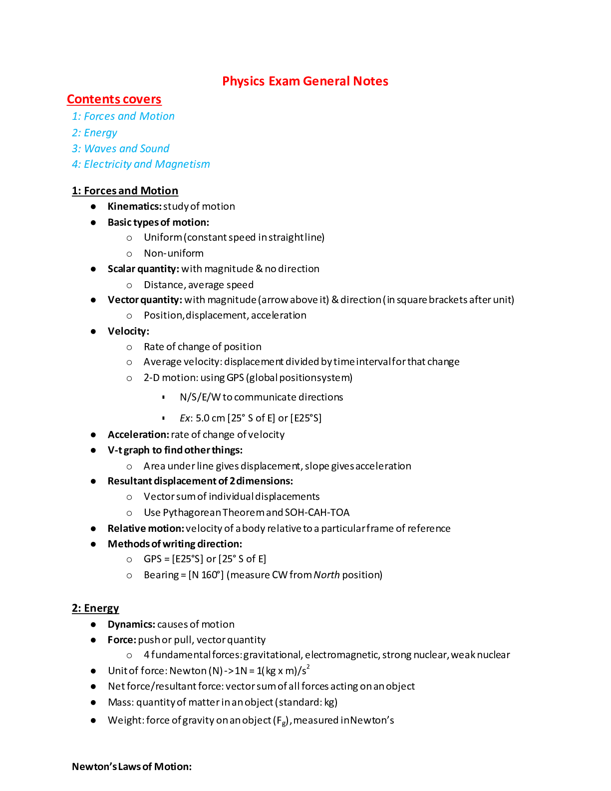 Physics > Summary > Physics Exam General Study Notes(Grade A After Reading Notes) (All)