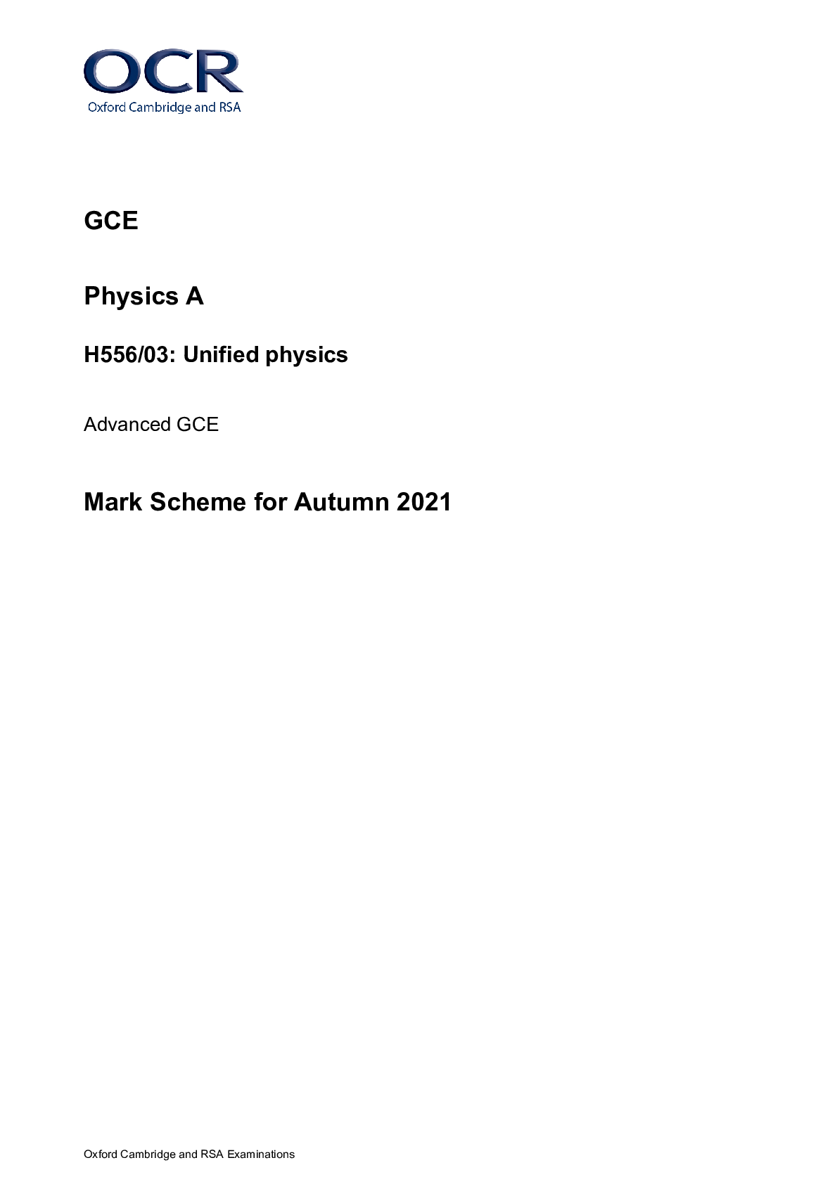 Physics > A/As Level Mark Scheme > > GCE Physics A H556/03: Unified physics Advanced GCE Mark Scheme for Autumn 2021 (All)