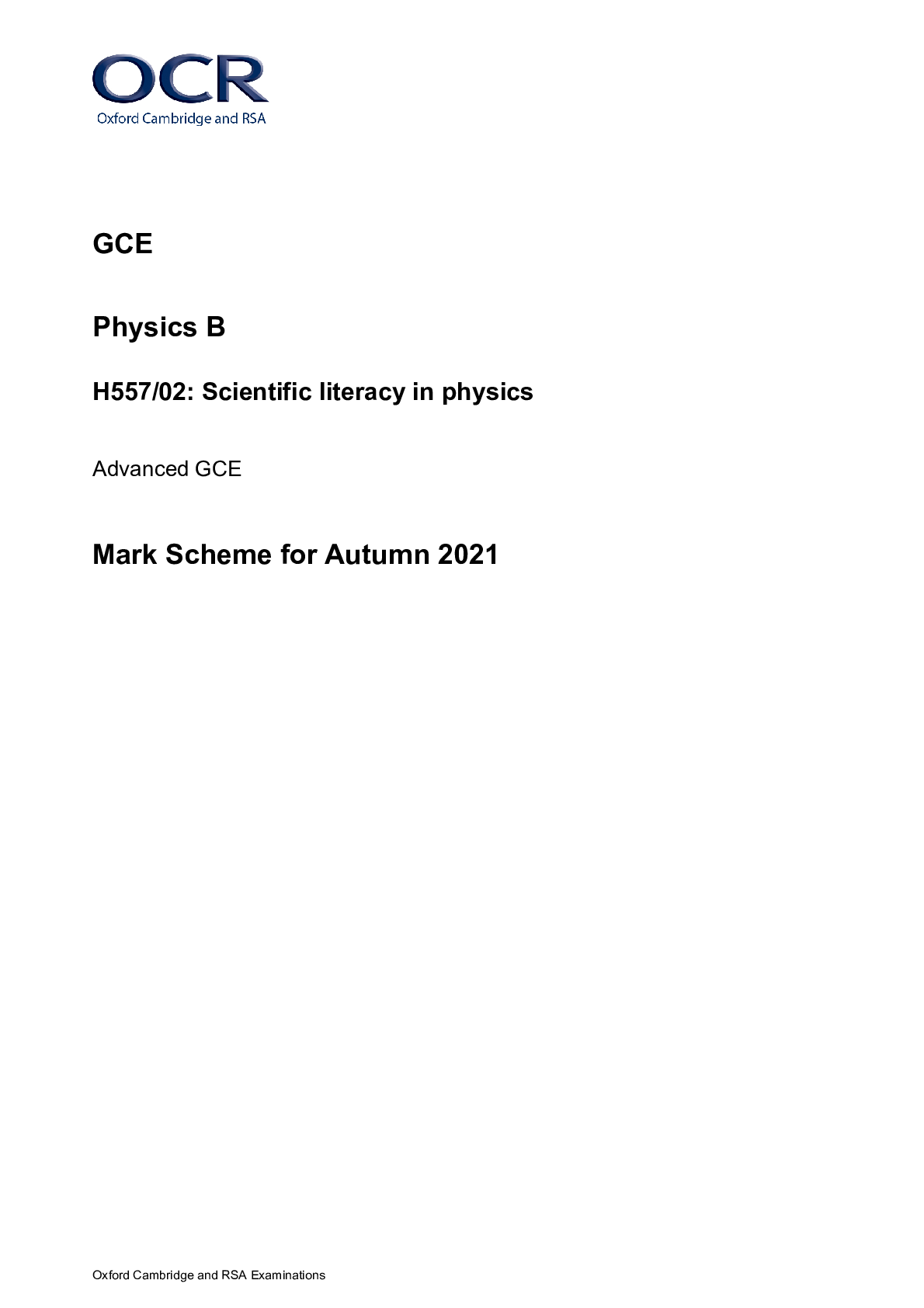 Physics > A/As Level Mark Scheme > > GCE Physics B H557/02: Scientific literacy in physics Advanced GCE Mark Scheme for Autumn 2021 (All)