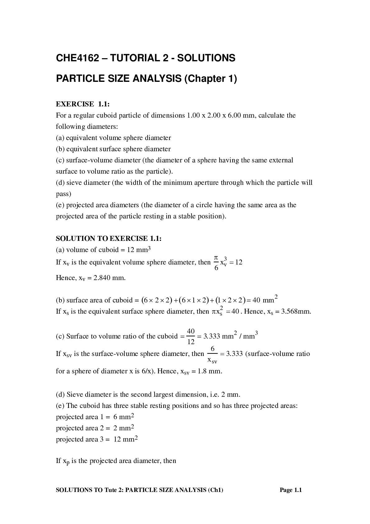 Physics > QUESTIONS & ANSWERS > Monash University - CHE 4162Set 2-Solutions - Ch1 Part Size analysis. (All)