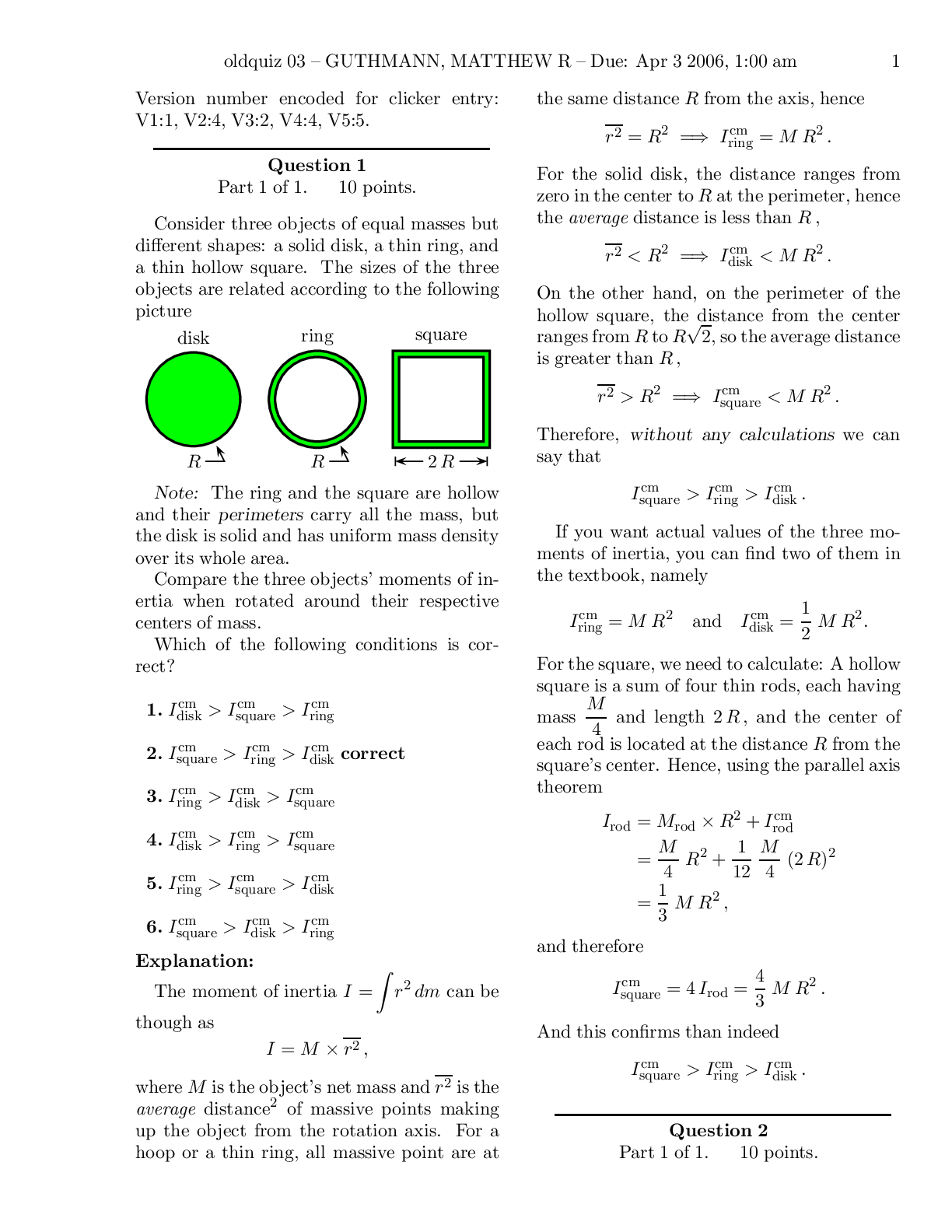 Physics > QUESTIONS & ANSWERS > University of Texas - PHY 12343oldquiz3_06 (All)