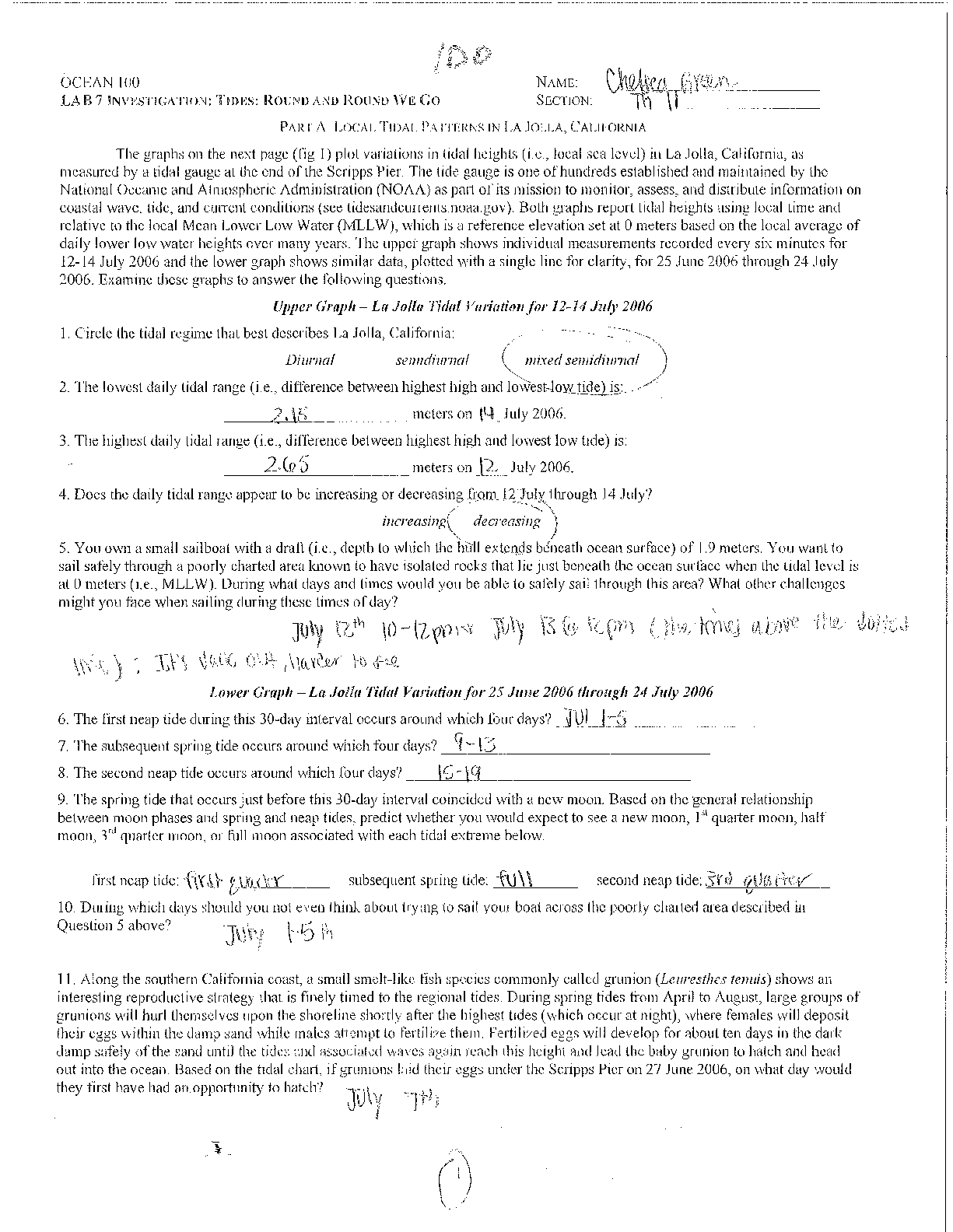 Physics > Lab Experiment > San Diego State University - OCEAN 100 Ocean 100 Lab 7- Tides: Round and Round We Go (All)