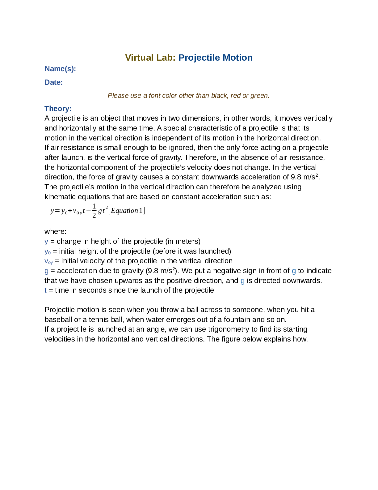 Physics > QUESTIONS & ANSWERS > PHYSICS 1415VLab_Projectile_Motion_Physlet-2. Virtual Lab: Projectile Motion Questions and Answers (All)