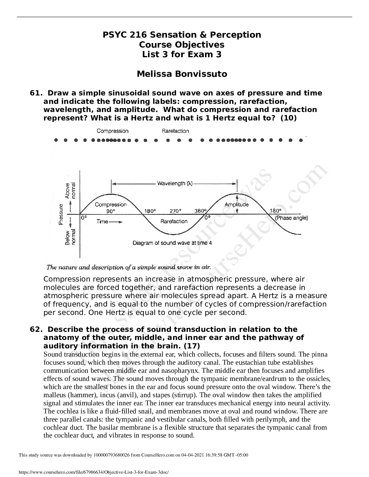 Physics > QUESTIONS & ANSWERS > College of Charleston - PSYC 216Objective List 3 for Exam 3. (All)