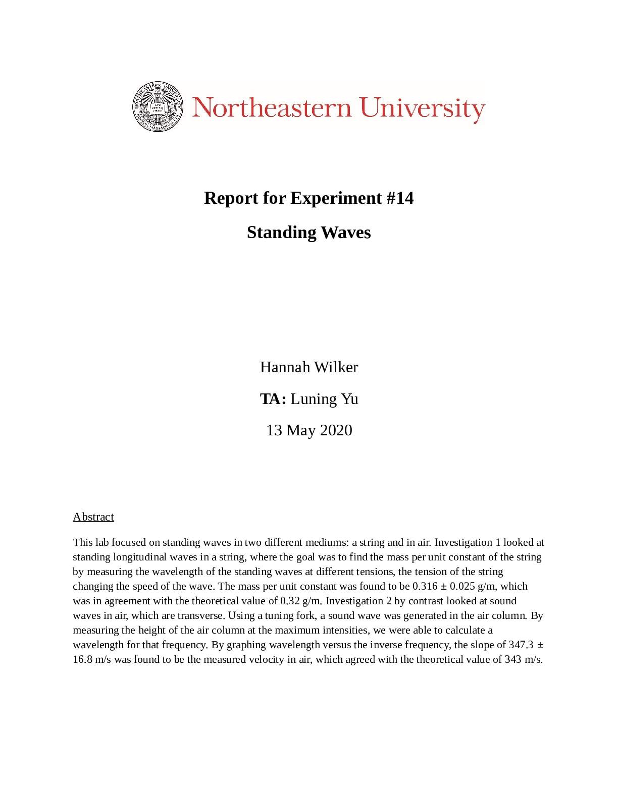Physics > Lab Report > Report for Experiment #14 Standing Waves (All)