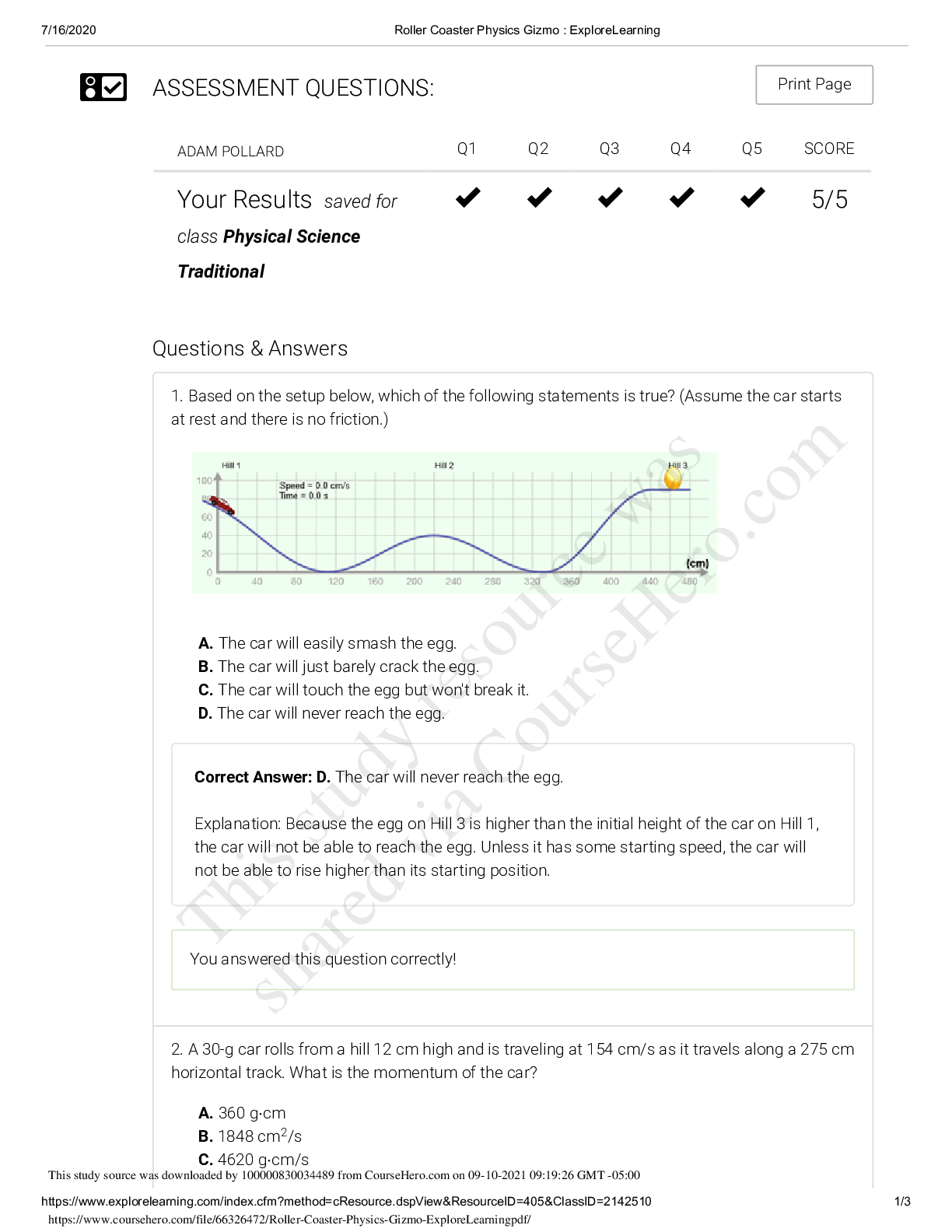 Physics > QUESTIONS & ANSWERS > physics assesment questions (All)