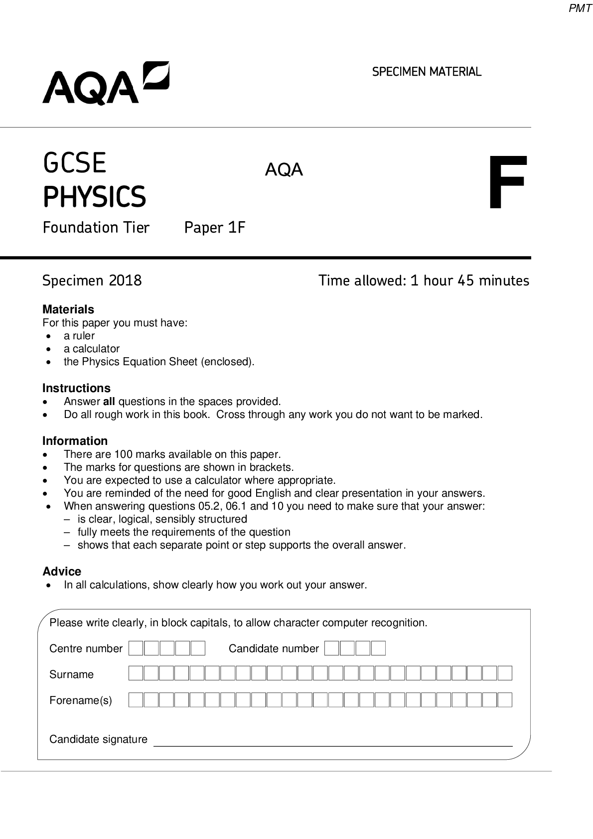 Physics > AQA QUESTION and MARK SCHEMES > AQA GCSE PHYSICS Foundation Tier Paper 1 2020 (All)