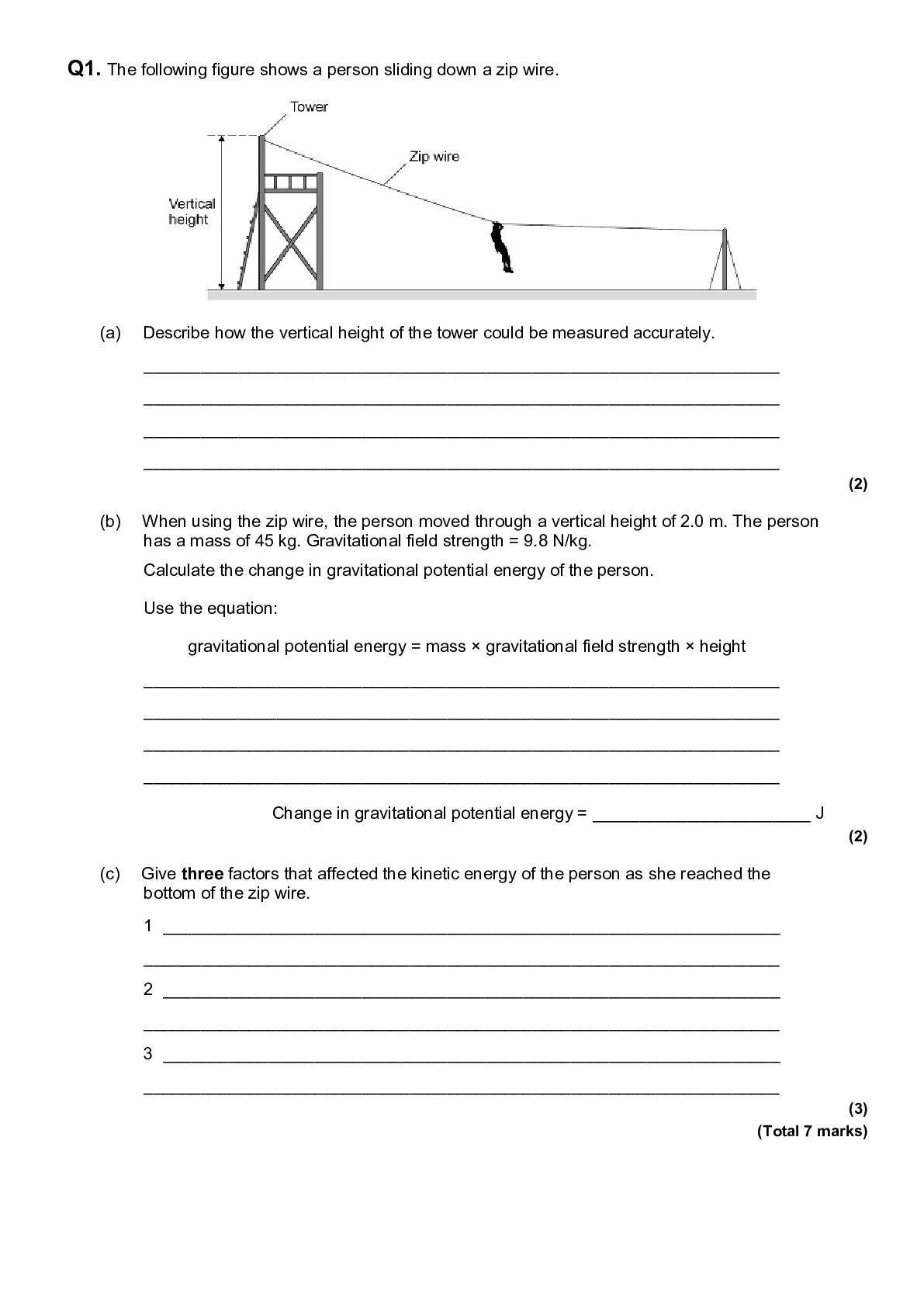 Physics > QUESTIONS & ANSWERS > Energy Questions, GCSE questions and answers. graded A+ (All)