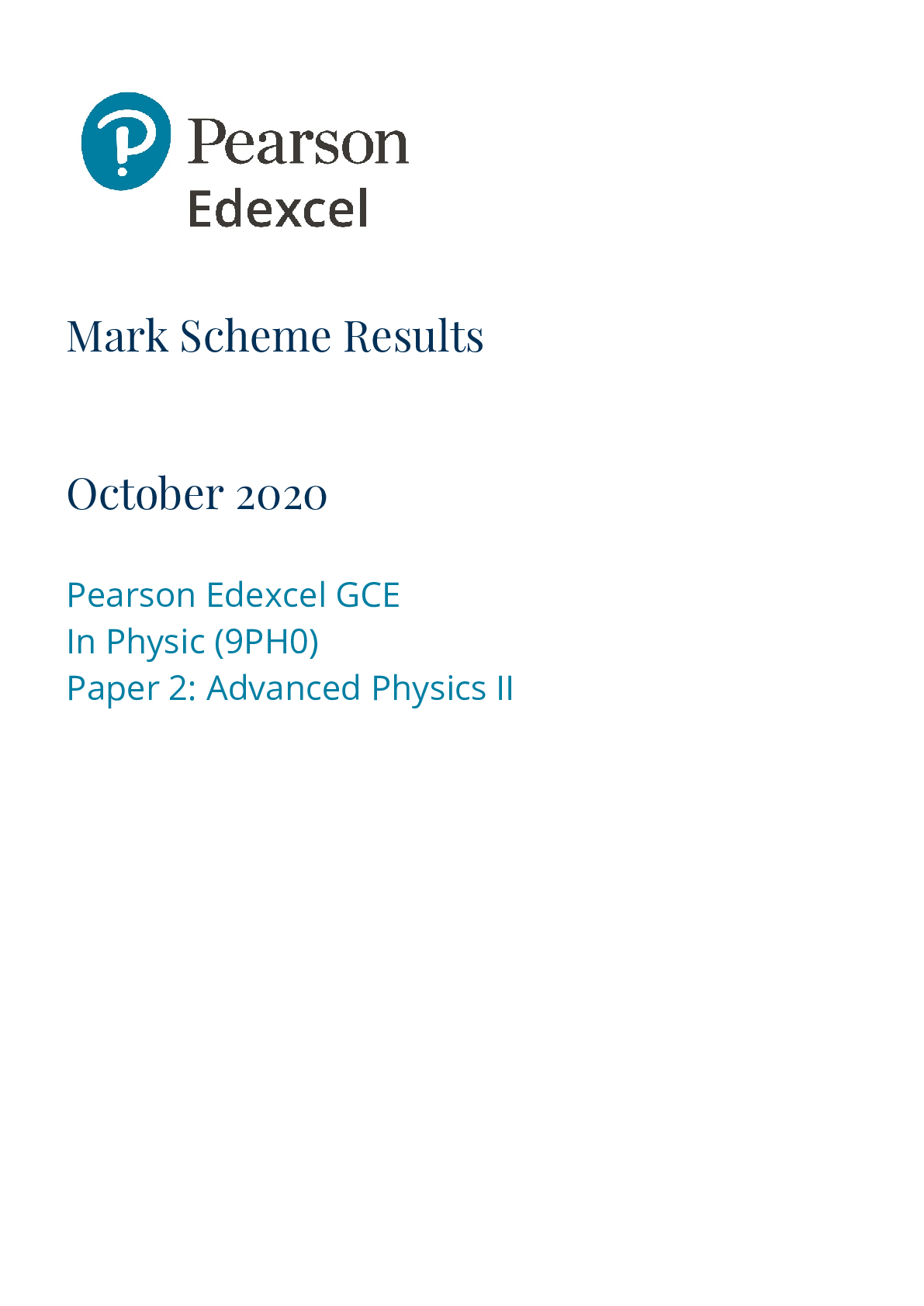 Physics > Edexcel > Pearson Edexcel GCE_Physics_9PH0/02 Mark Scheme 2020 | Advanced Physics II (All)