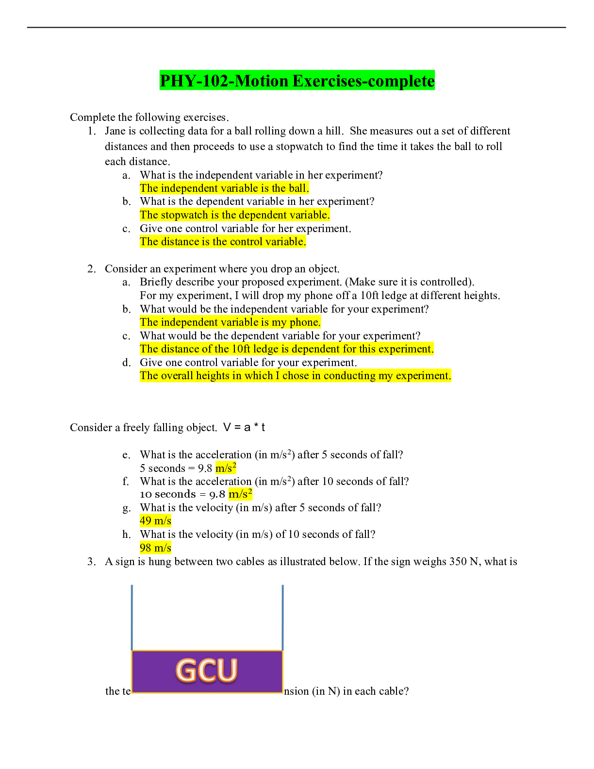 Physics > QUESTIONS & ANSWERS > PHY-102: Motion Exercises Latest Updated 2022, Already Graded A (All)