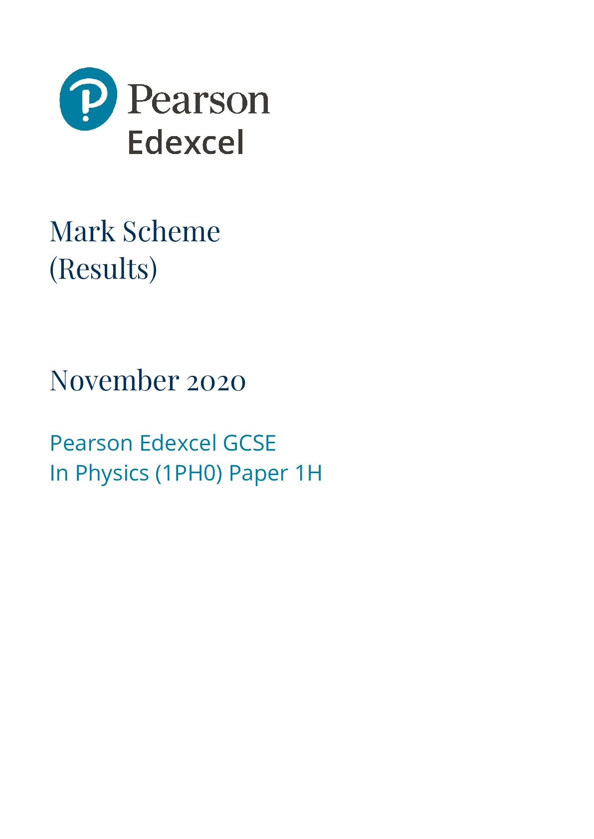 Physics > GCSE MARK SCHEME > Pearson Edexcel_GCSE (9-1) Physics_1PH0/1H Mark Scheme 2020 | Paper 1 (All)