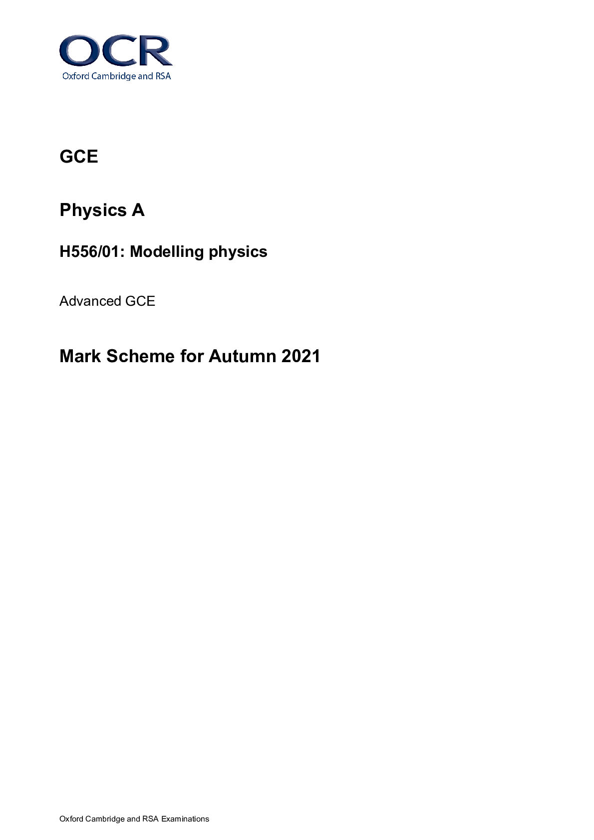 Physics > A/As Level Mark Scheme > > GCE Physics A H556/01: Modelling physics Advanced GCE Mark Scheme for Autumn 2021 (All)
