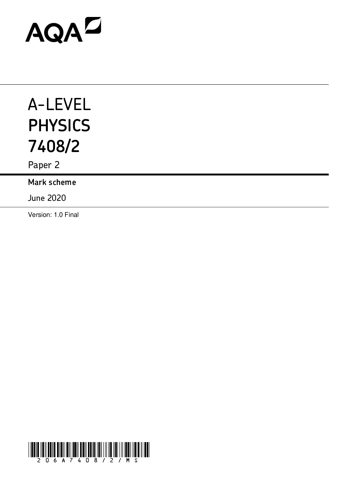 Physics > AQA > AQA_A Level Physics_7408/1 Mark Scheme_2020 | Paper 1 (All)