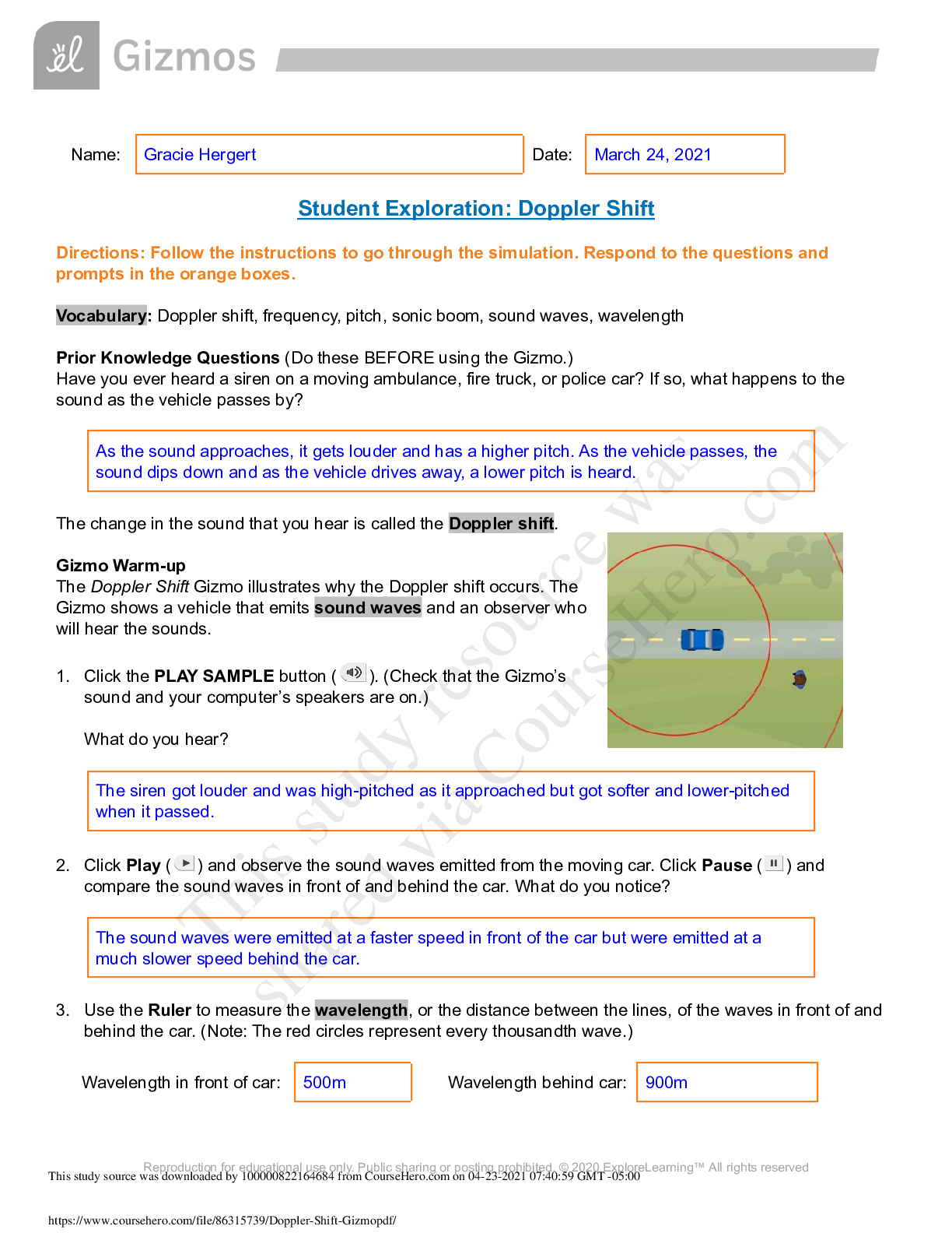 Physics > GIZMOS > GIZMOS.PHYSICS 3U1-Doppler Shift Gizmo.ALL ANSWERS VERIFIED,100% SCORE (All)