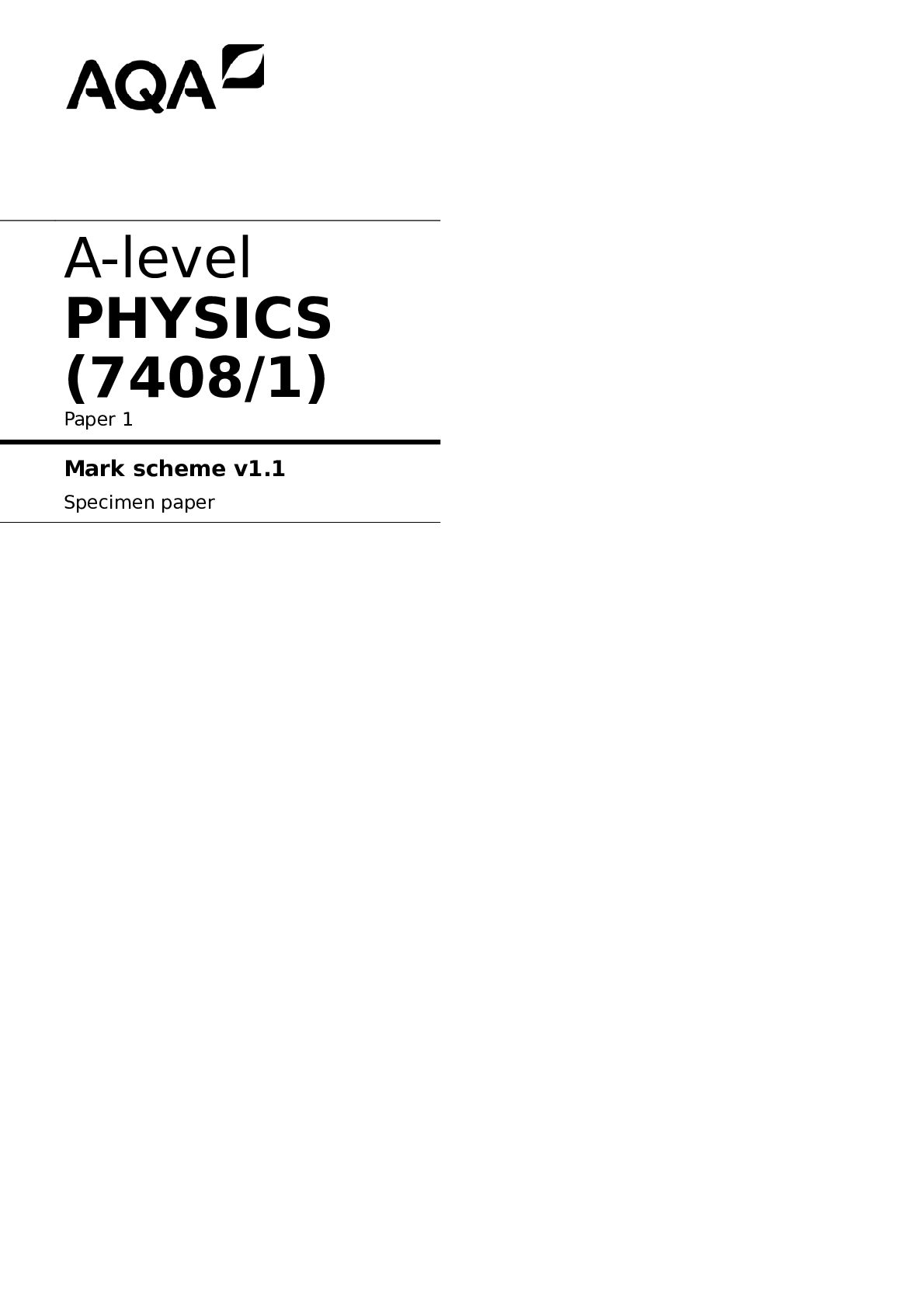 Physics > EXAMs > AQA A LEVEL PHYSICS MARKING SCHEME PAPER 1 2020 (All)