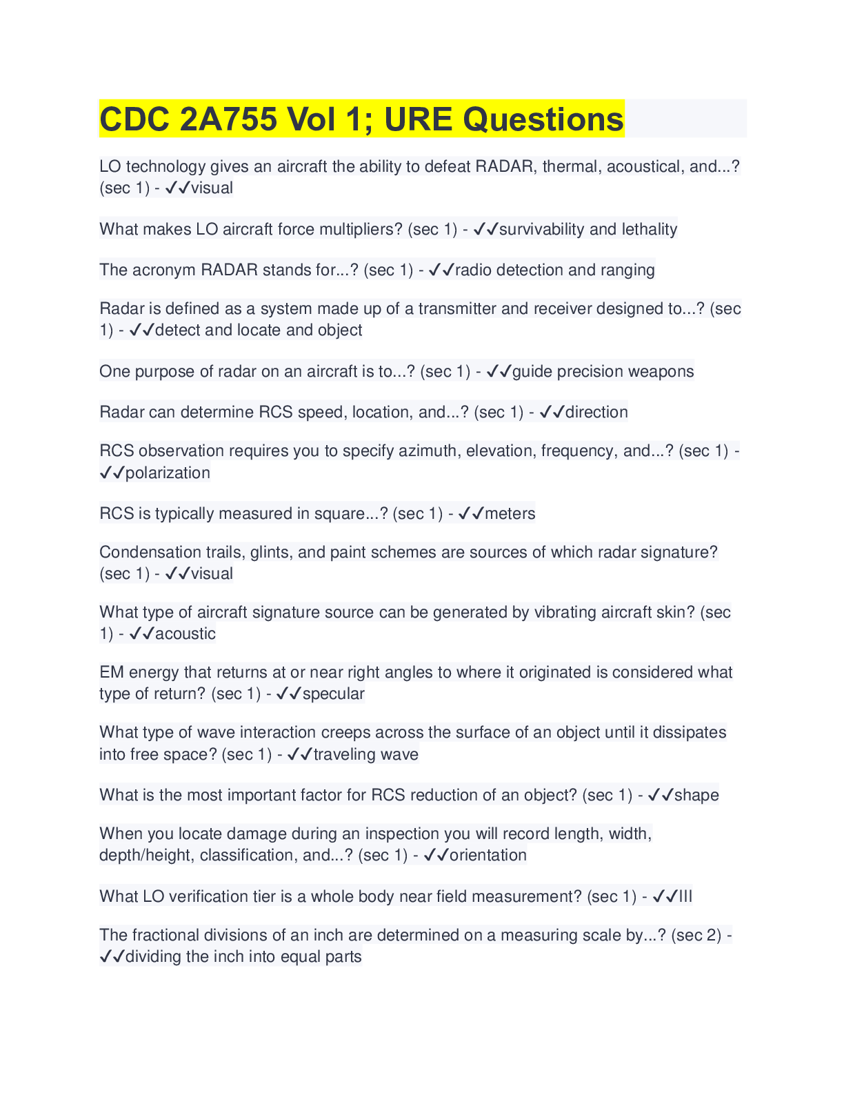 Physics > EXAMs > CDC 2A755 Vol 1; URE Questions | 100 Questions with 100% Correct Answers (All)