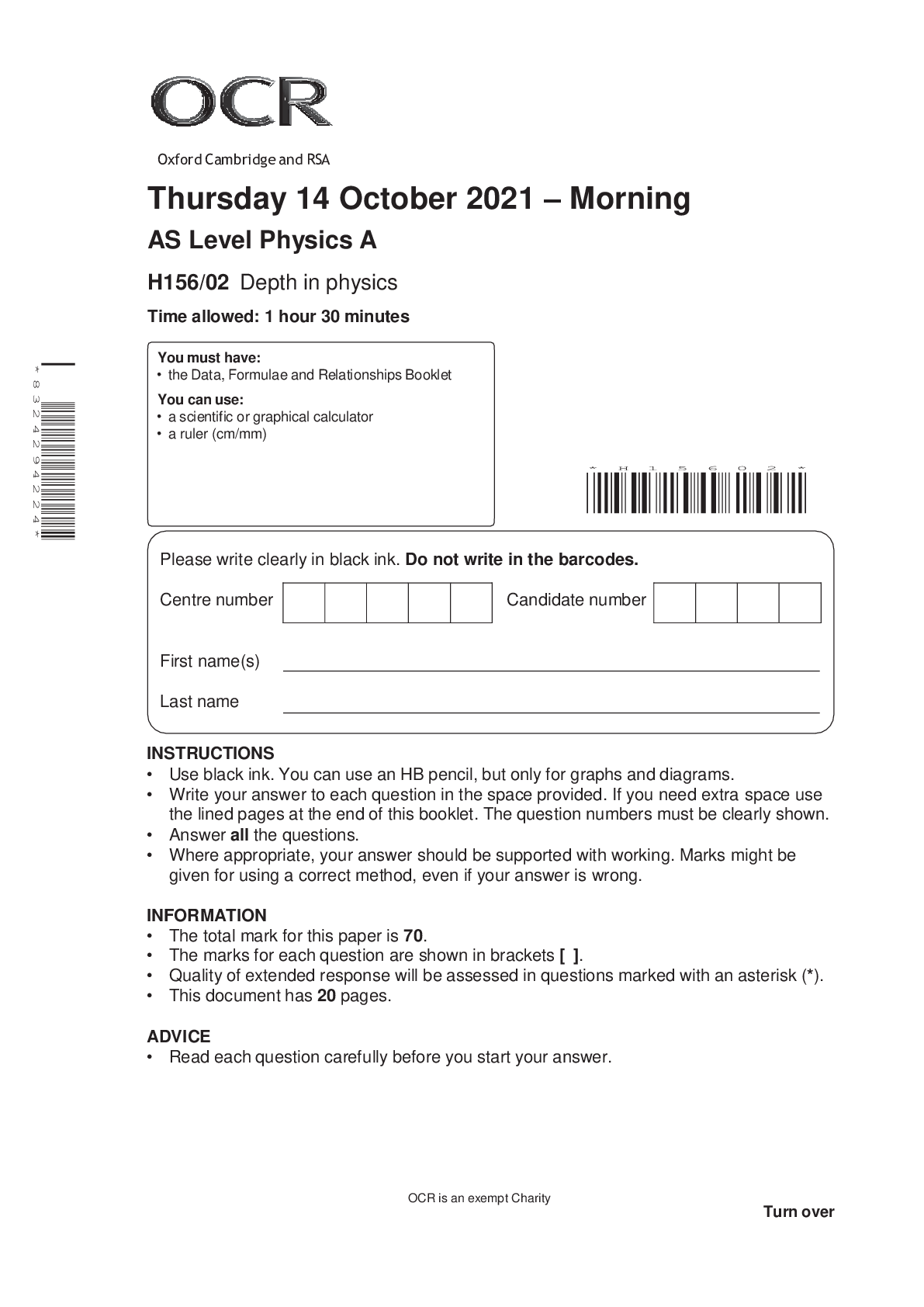 Physics > As Level Question Papers > > AS Level Physics AH156/02Depth in physics QUESTION PAPER (All)