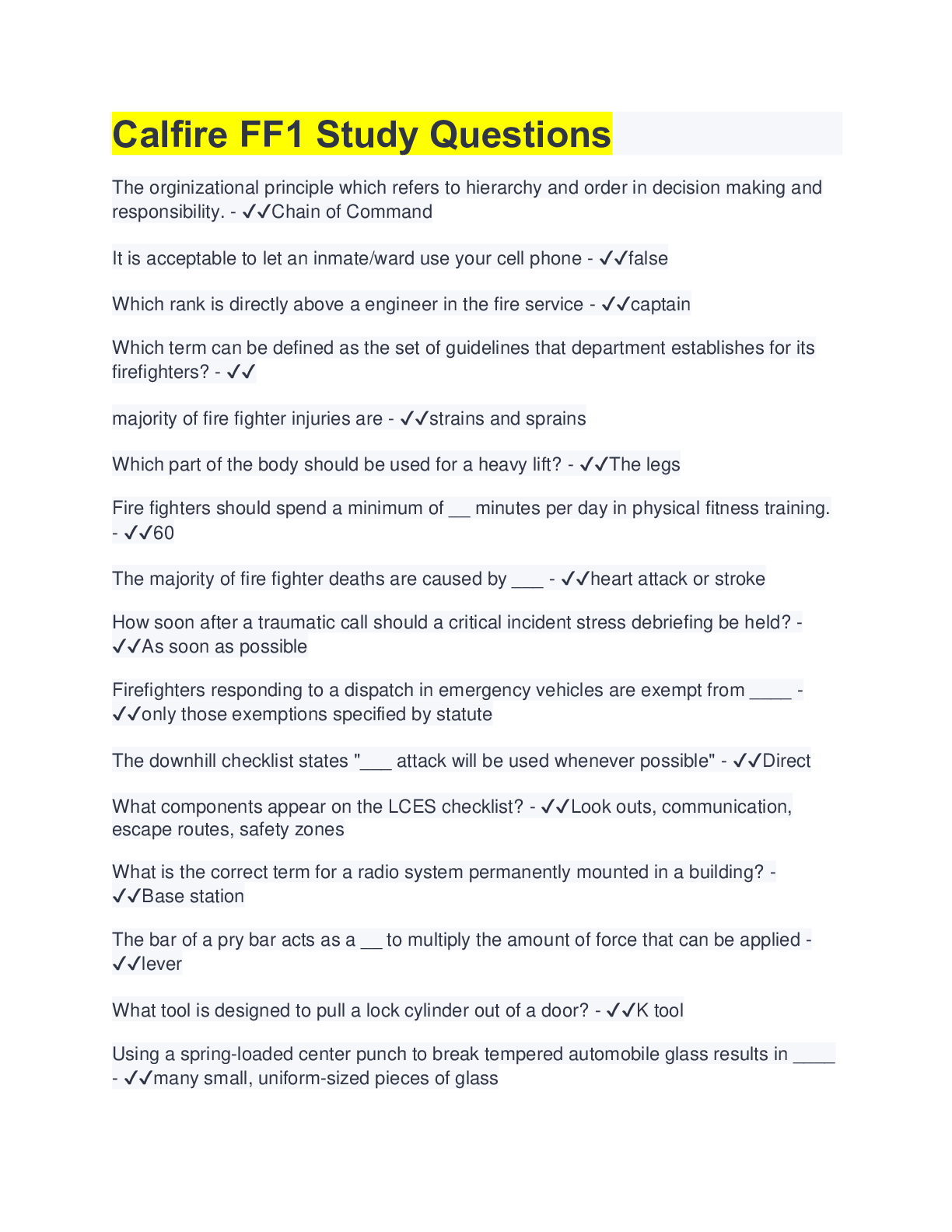 Physics > EXAM > Calfire FF1 Study Questions | 100 Questions with 100% Correct Answers (All)