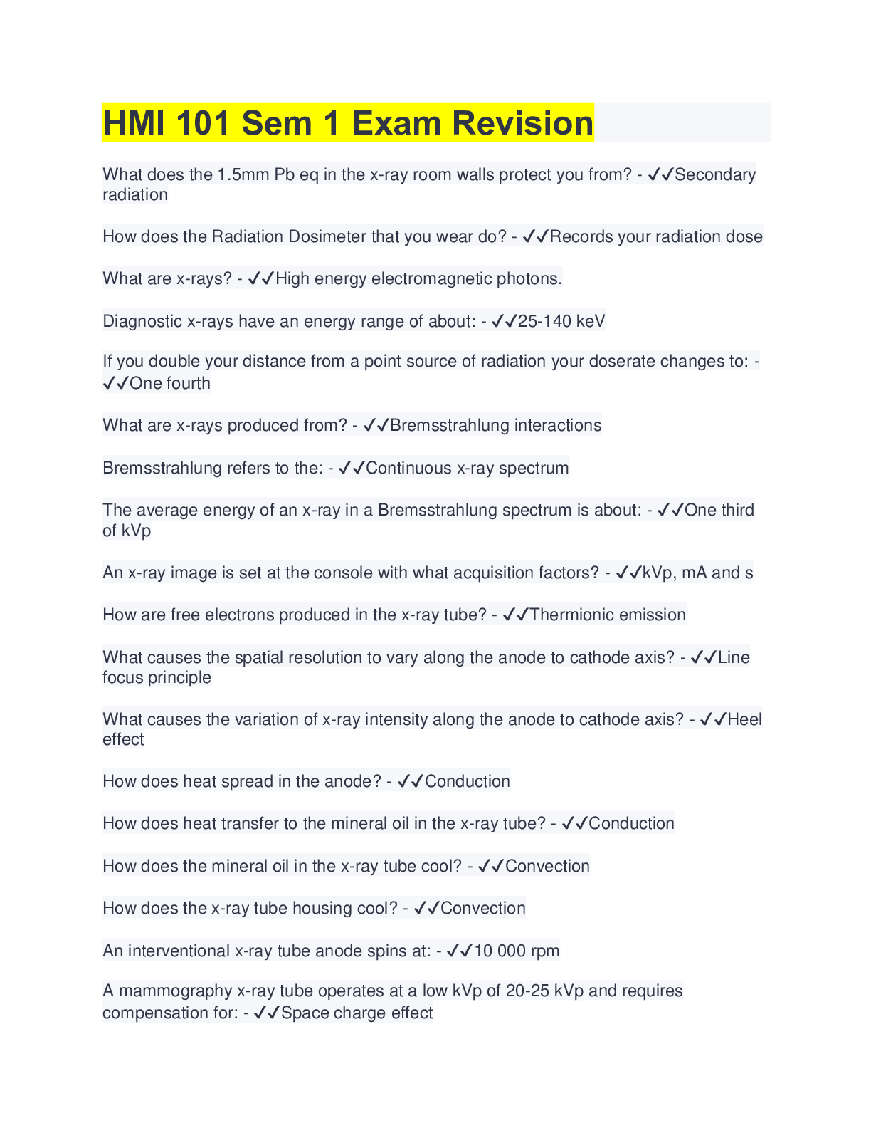 Physics > EXAM > HMI 101 Sem 1 Exam Revision | 100% Correct Answers (All)