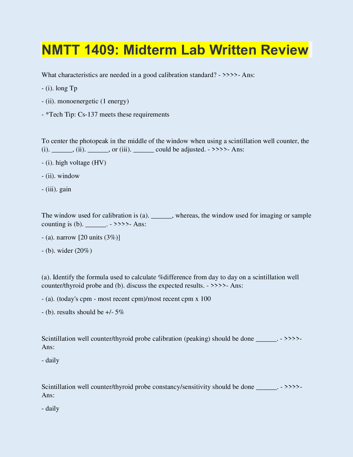 Physics > EXAM > NMTT 1409 Midterm Lab Written Review | 40 Questions with 100% Correct Answers | Updated & Verified (All)