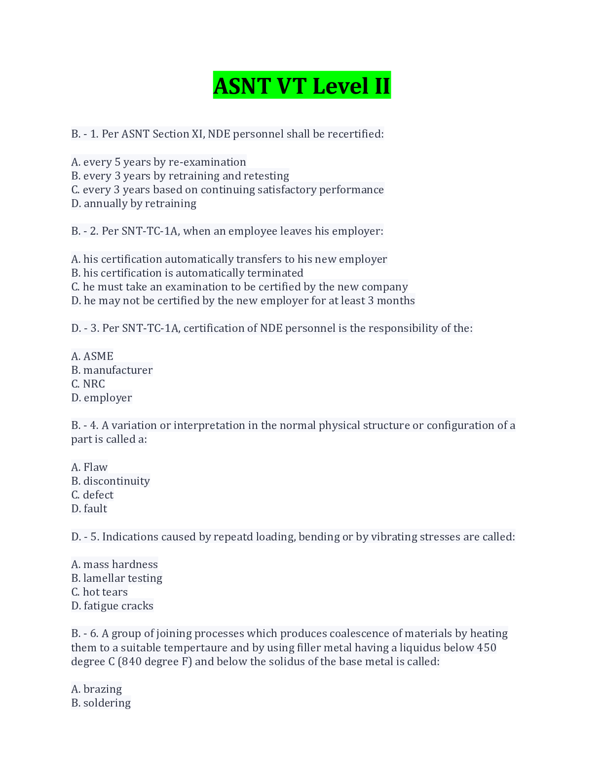 Physics > EXAM > ASNT VT Level II Exam 2022/2023/ Download to get A (All)