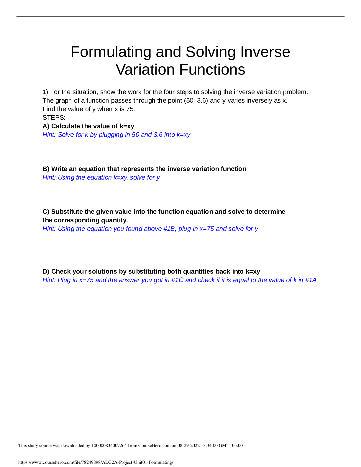 Physics > QUESTIONS & ANSWERS > ALG2A-Project-Unit01-Formulating iSchool High @ University Park PSYCH 2301 (All)