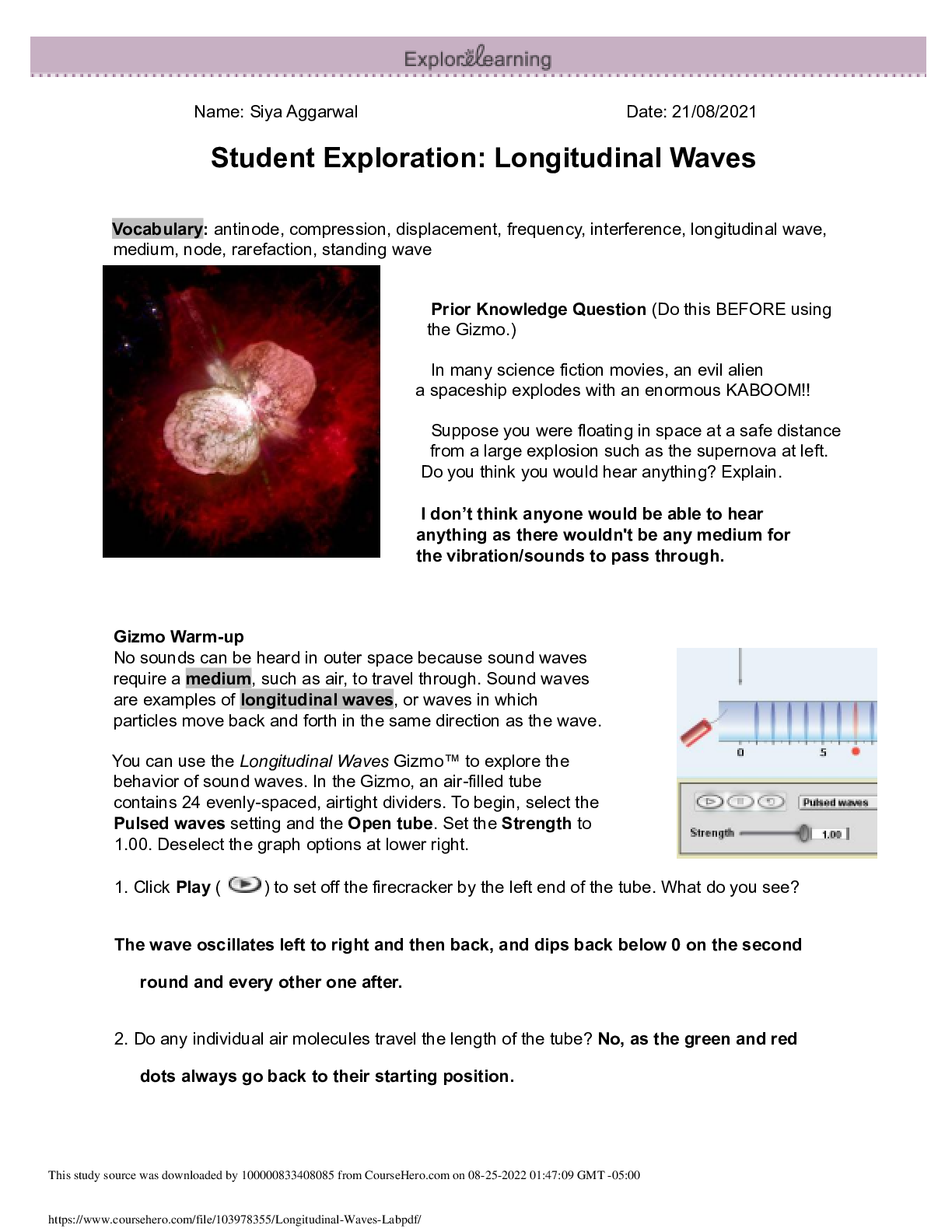 Physics > GIZMOS > Longitudinal Waves Gizmo Lab Physics | questions and 100% correct | 6 pages (All)