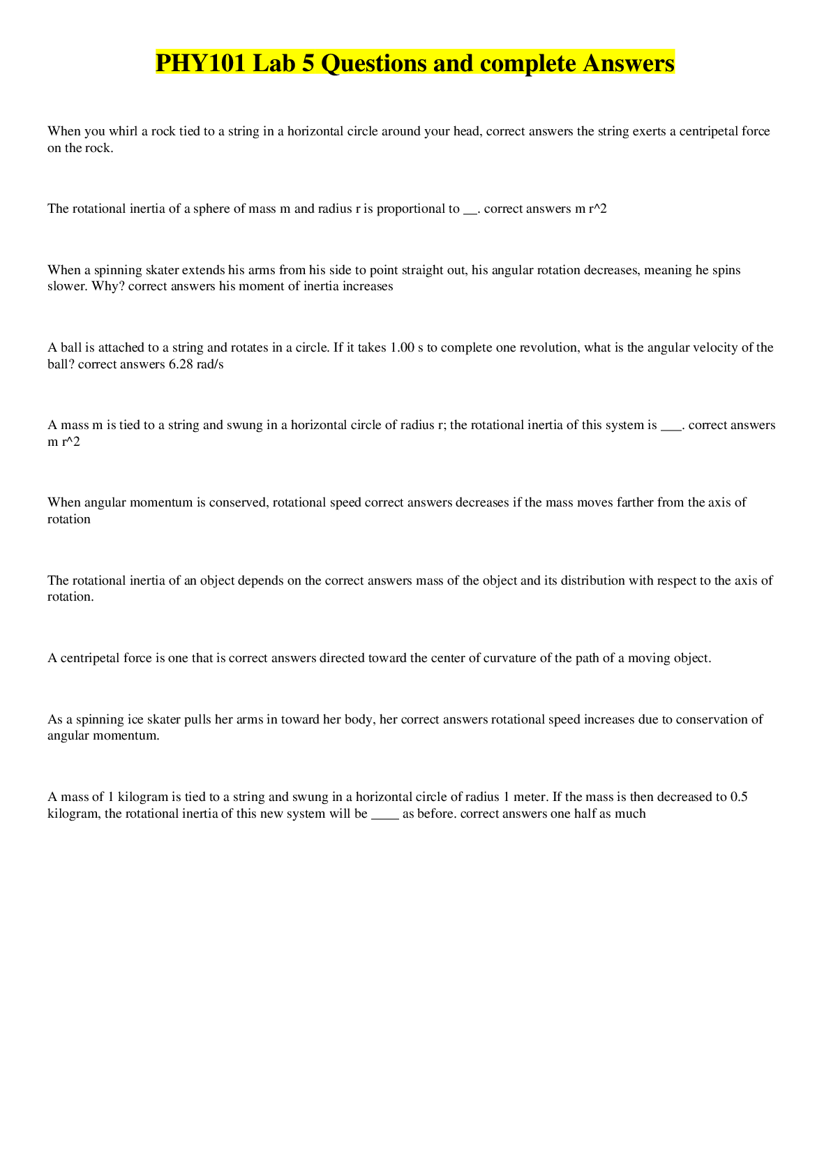 Physics > QUESTIONS & ANSWERS > PHYS 101L Measurement Techniques Metropolitan Community College Session Fall 2022 {ANSWERED} (All)